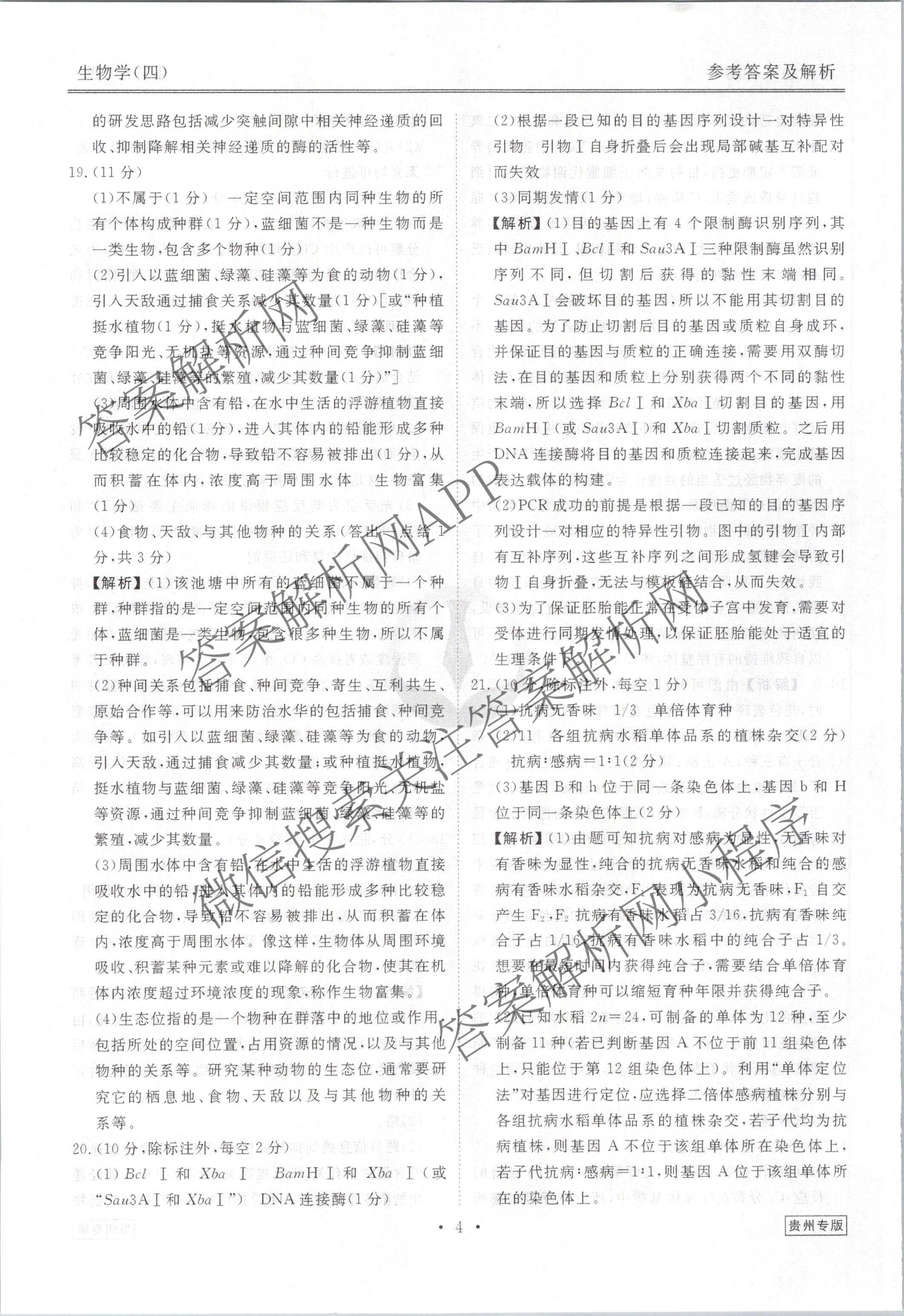 [高三](衡水金卷先享题)·调研卷 2024年普通高中学业水平选择性考试模拟试题(四)4生物(贵州专版)答案