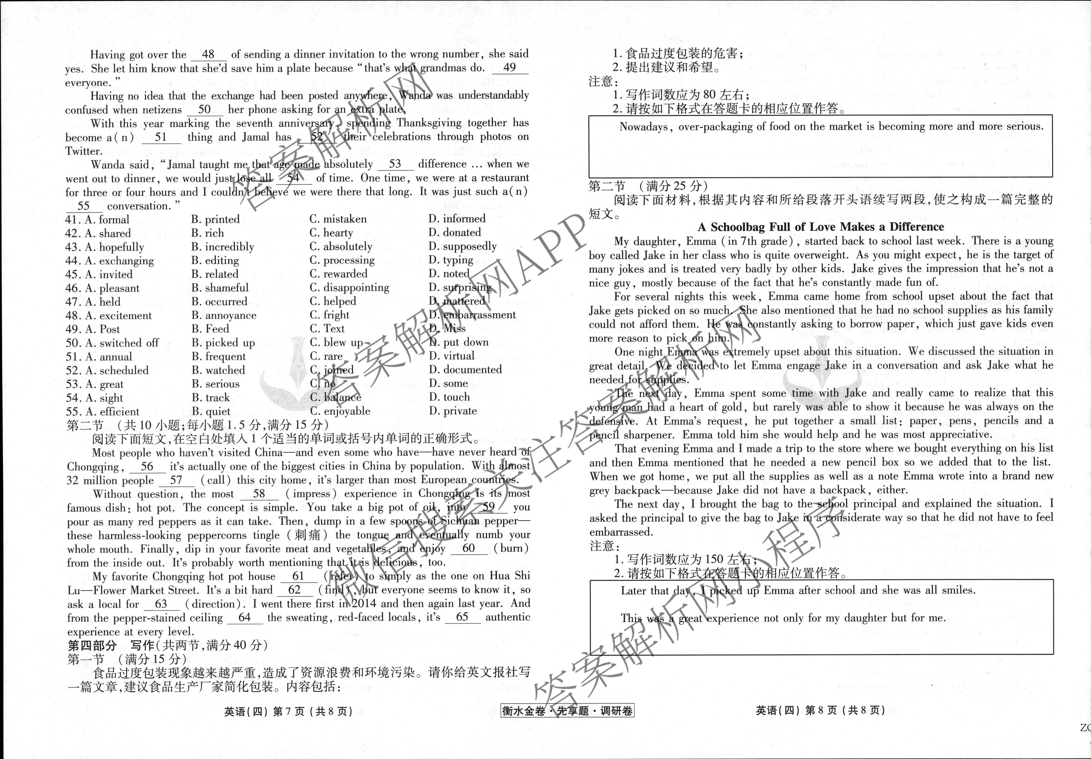 衡水金卷先享题·调研卷 2024年普通高等学校招生全国统一考试模拟试题(四)4英语(新教材)试题,目前衡水金卷先享题答案网已经汇总了衡水金卷先享题·调研卷 2024年普通高等学校招生全国统一考试模拟试题(四)4英语(新教材)试题的各科答案和试卷,获取更多衡水金卷先享题答案解析,请在关注本站。