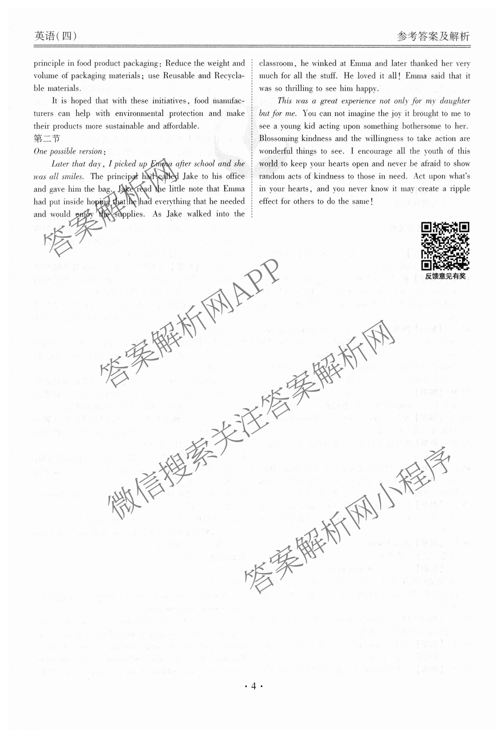 [高三][衡水金卷先享题]·调研卷 2024年普通高等学校招生全国统一考试模拟试题(四)4英语(无脚标)答案