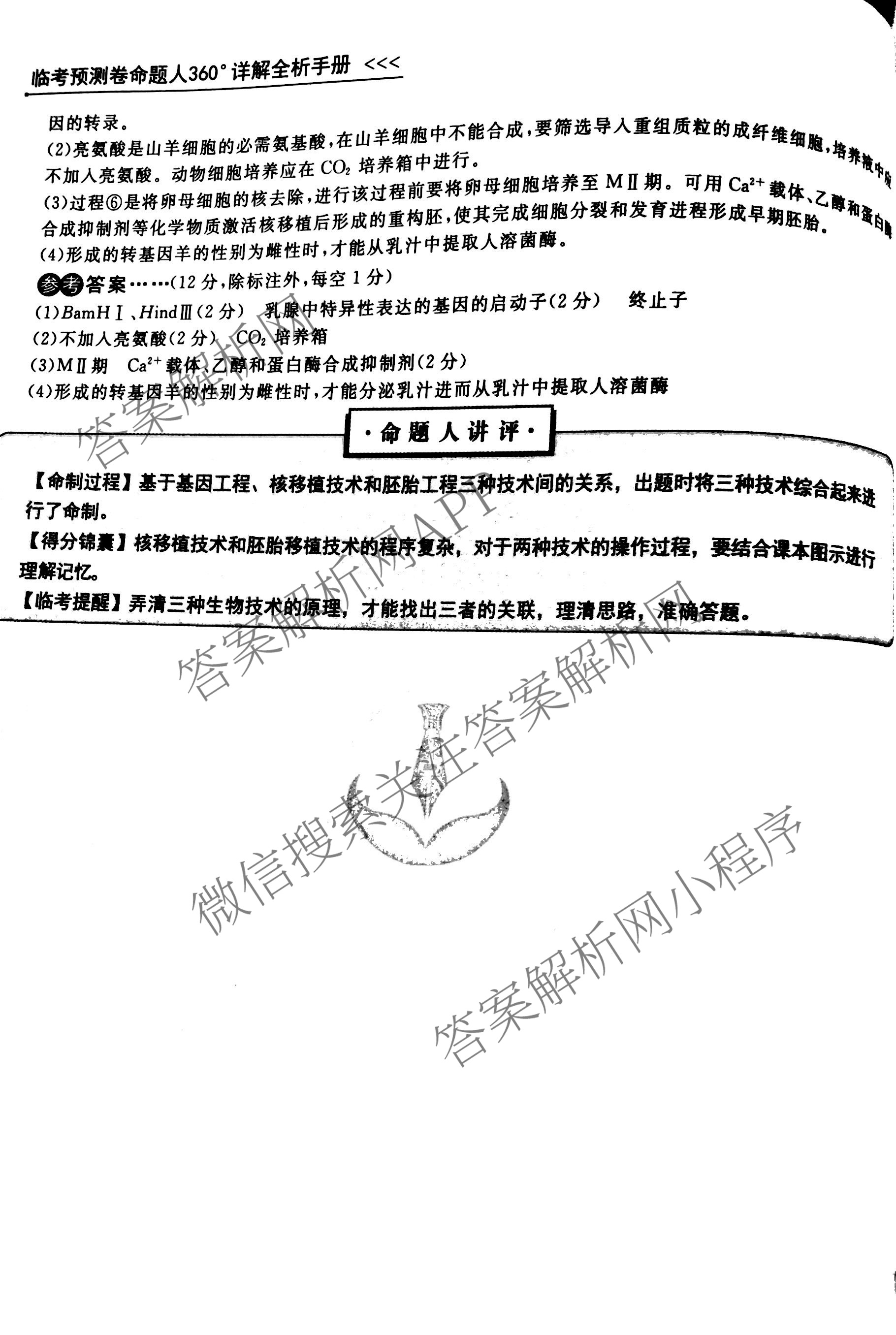 - (高三)2023届(衡水金卷先享题)·临考预测卷 生物·H(A)答案