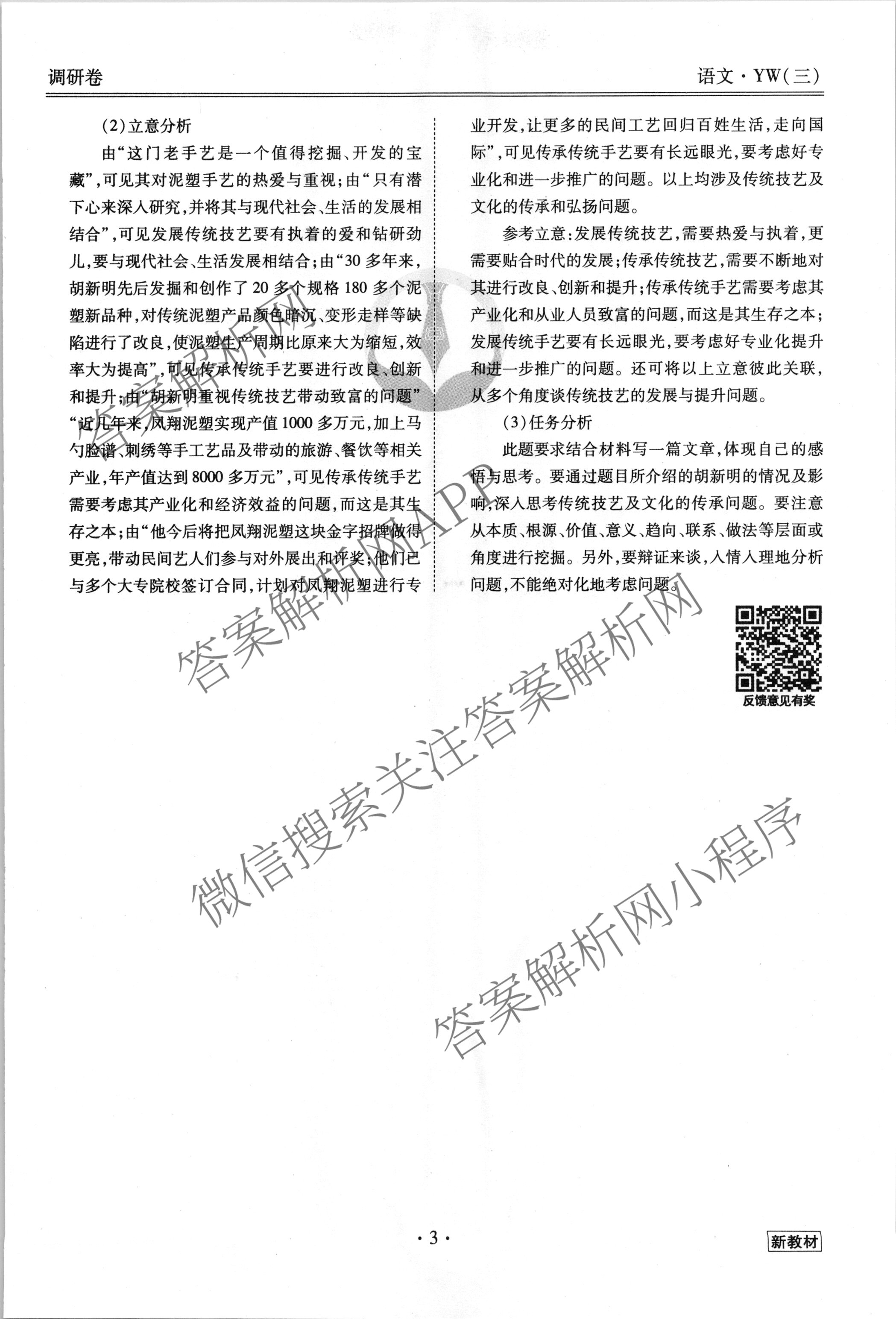 - (衡水金卷先享题) 2023届调研卷 语文(新教材YW)(三)3答案