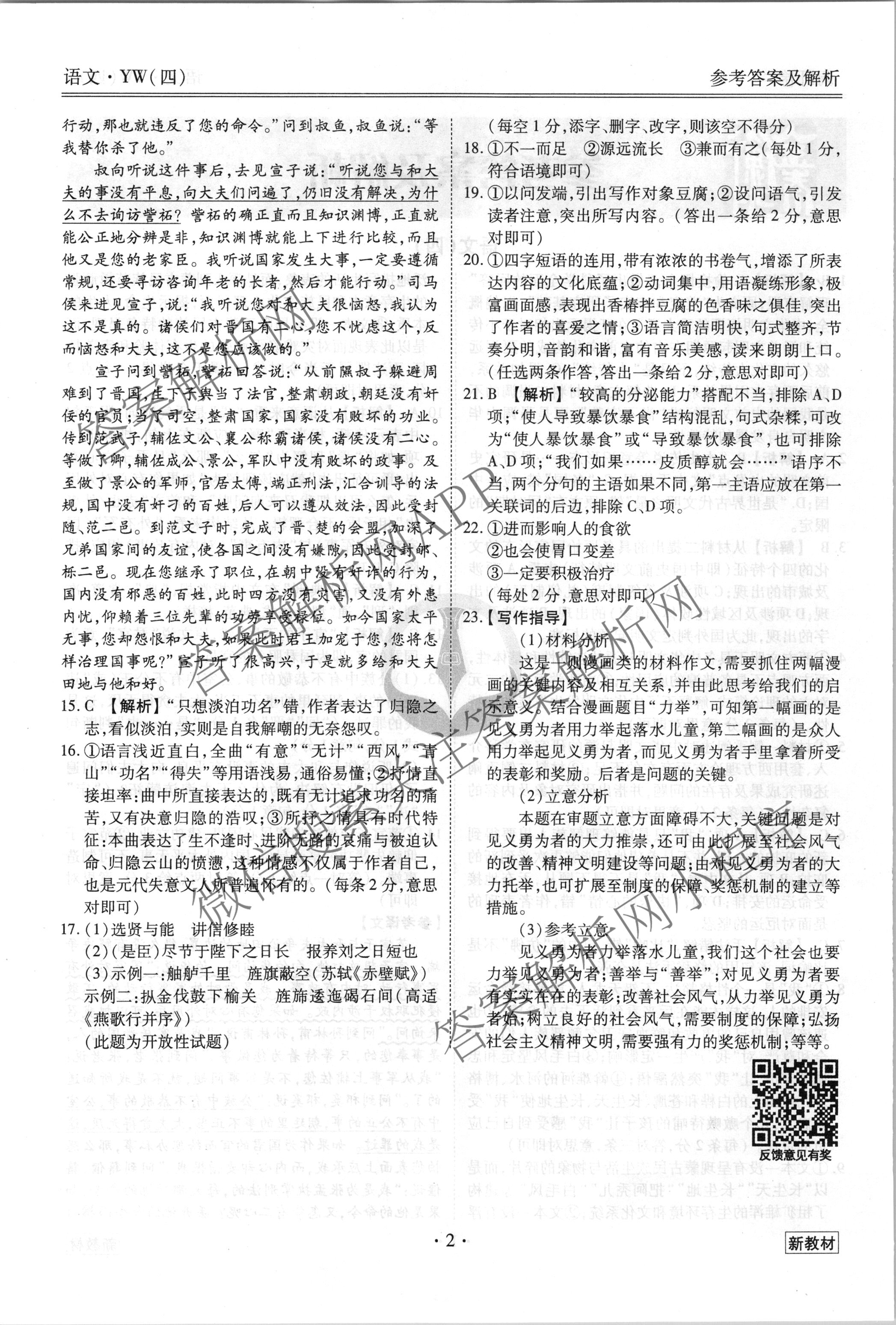 - [衡水金卷先享题] 2023届调研卷 语文(新教材YW)(四)4答案