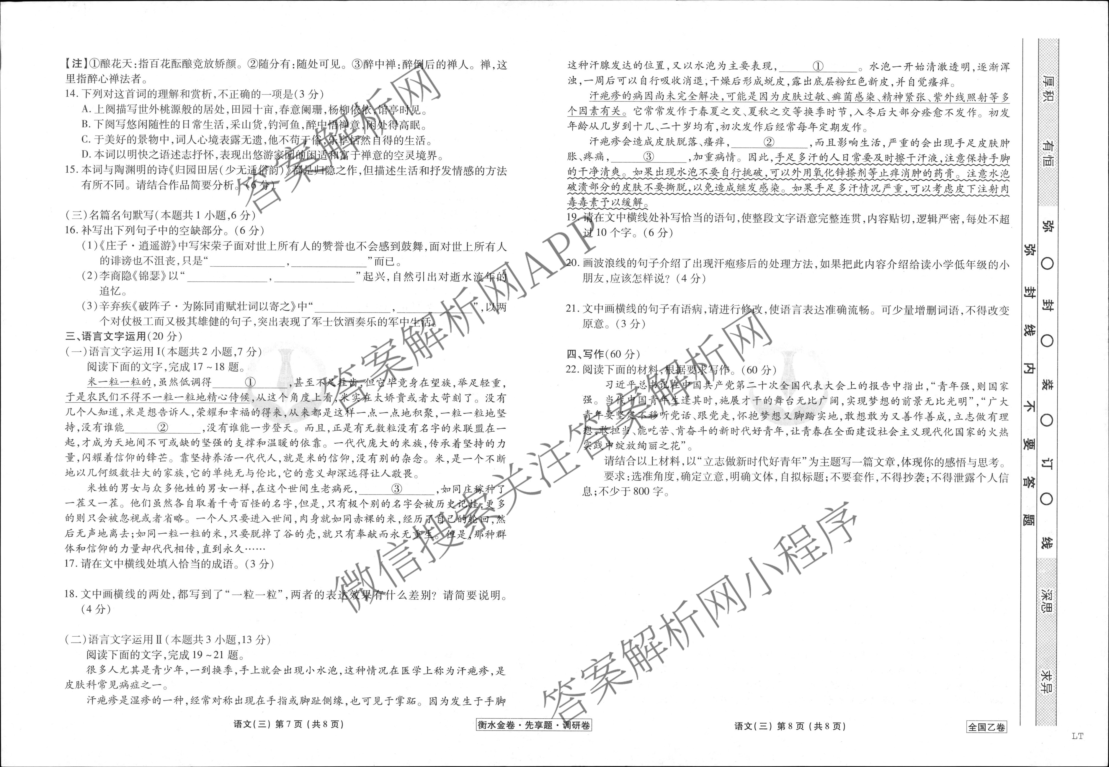 - 衡水金卷先享题 2023届调研卷 语文(全国乙卷)(三)3答案