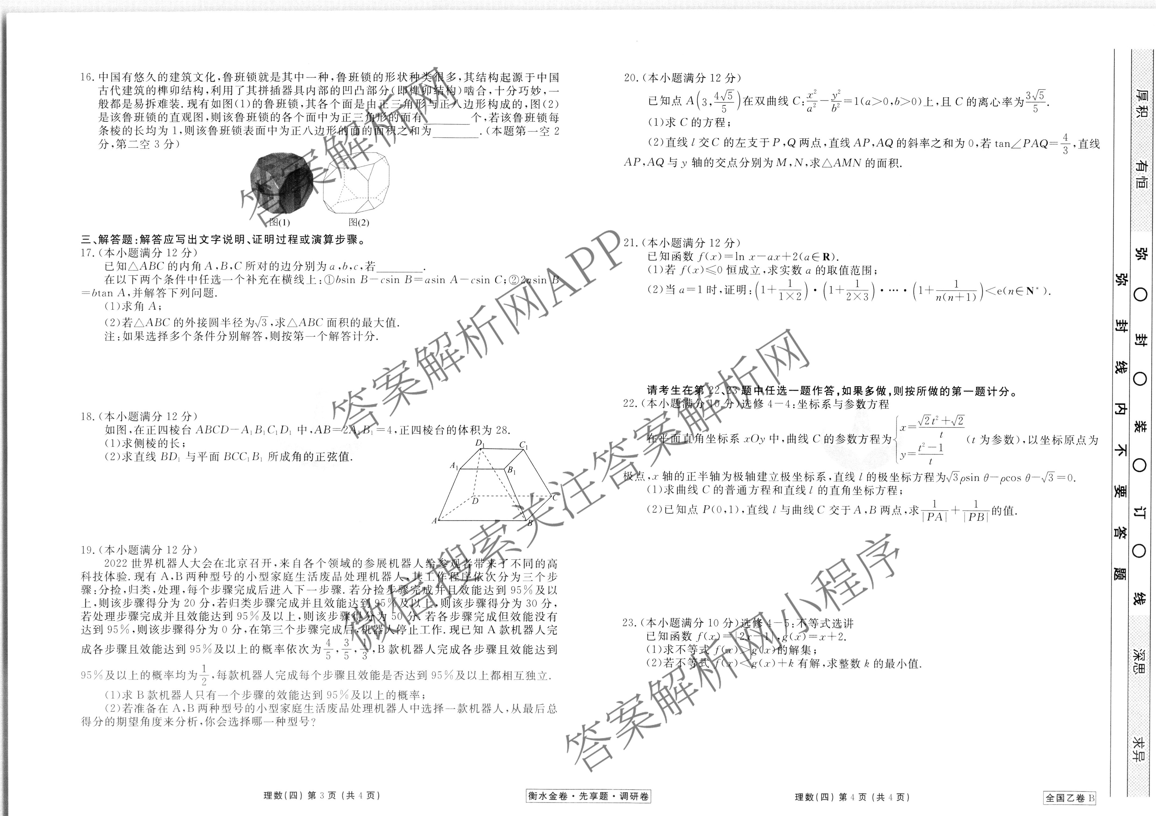 衡水金卷先享题 2023届调研卷 理数(全国乙卷B)(四)4试题,目前衡水金卷先享题答案网已经汇总了衡水金卷先享题 2023届调研卷 理数(全国乙卷B)(四)4试题的各科答案和试卷,获取更多衡水金卷先享题答案解析,请在关注本站。