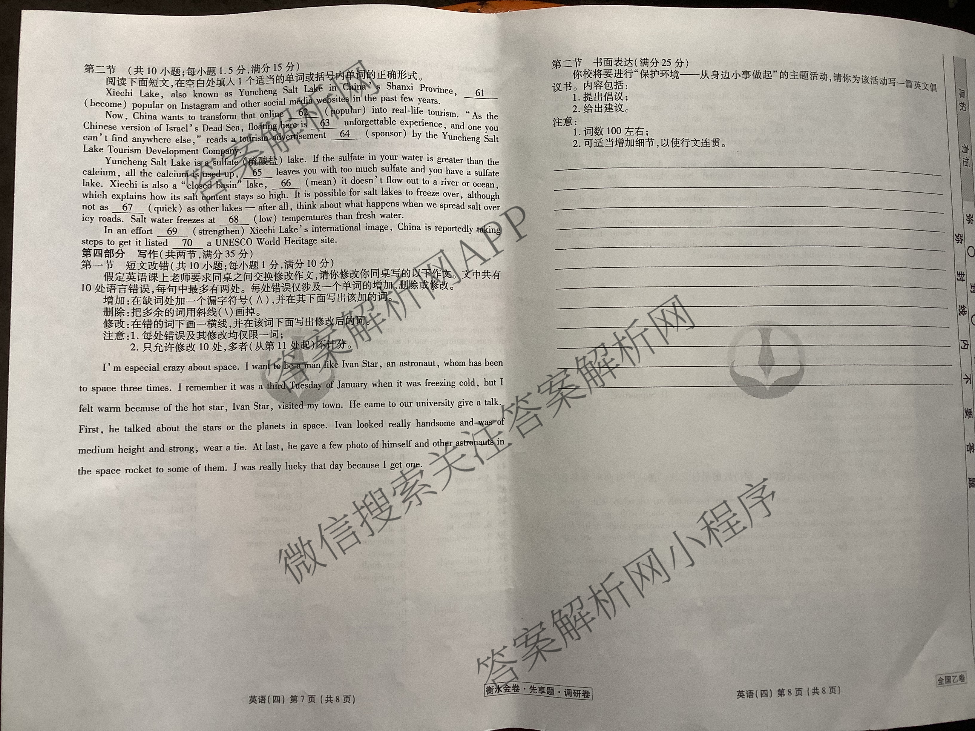 衡水金卷先享题 2023届调研卷 英语(全国乙卷)(四)4试题,目前衡水金卷先享题答案网已经汇总了衡水金卷先享题 2023届调研卷 英语(全国乙卷)(四)4试题的各科答案和试卷,获取更多衡水金卷先享题答案解析,请在关注本站。