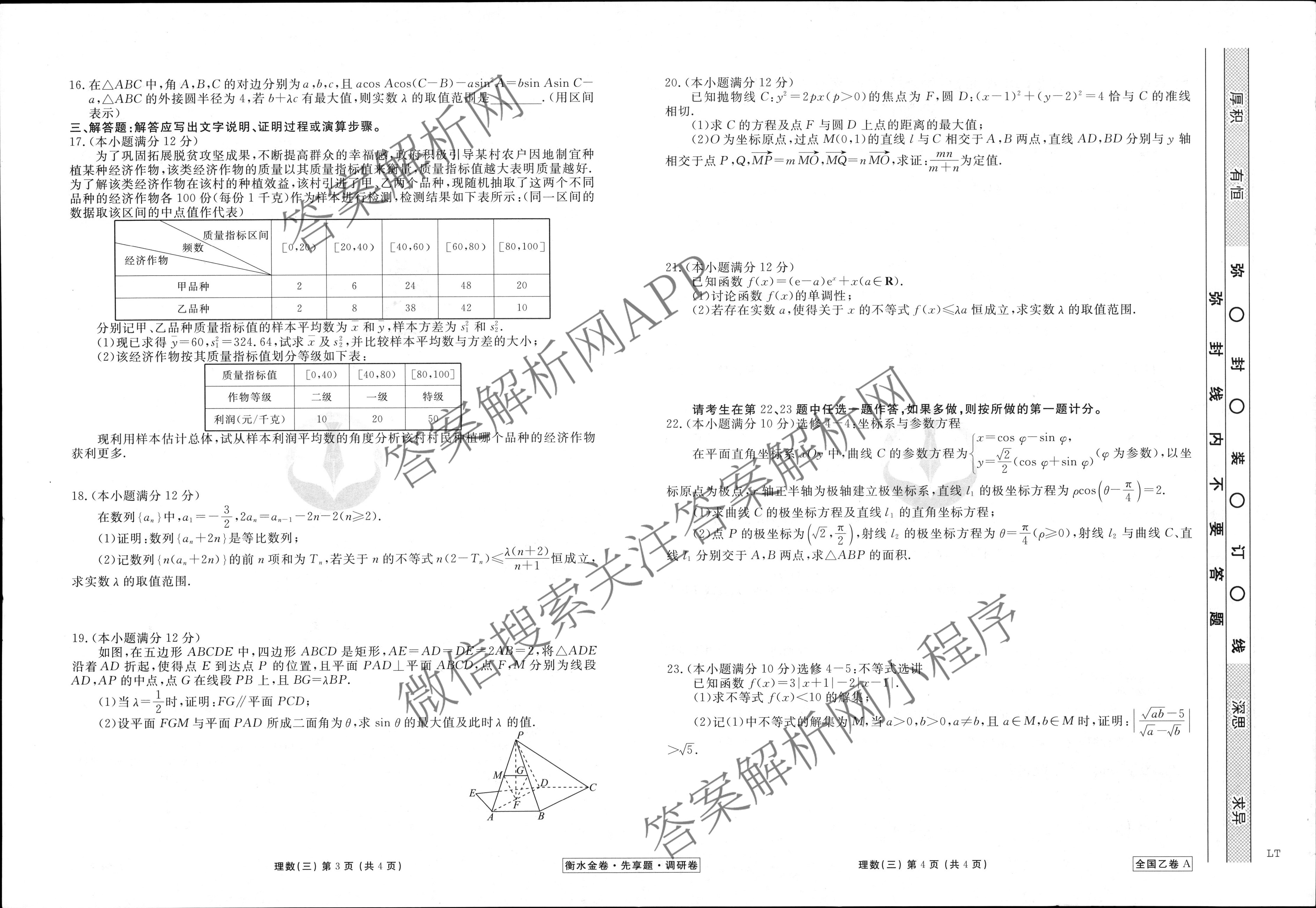 (高三)[衡水金卷先享题] 2023届调研卷 理数(全国乙卷A)(三)3试题