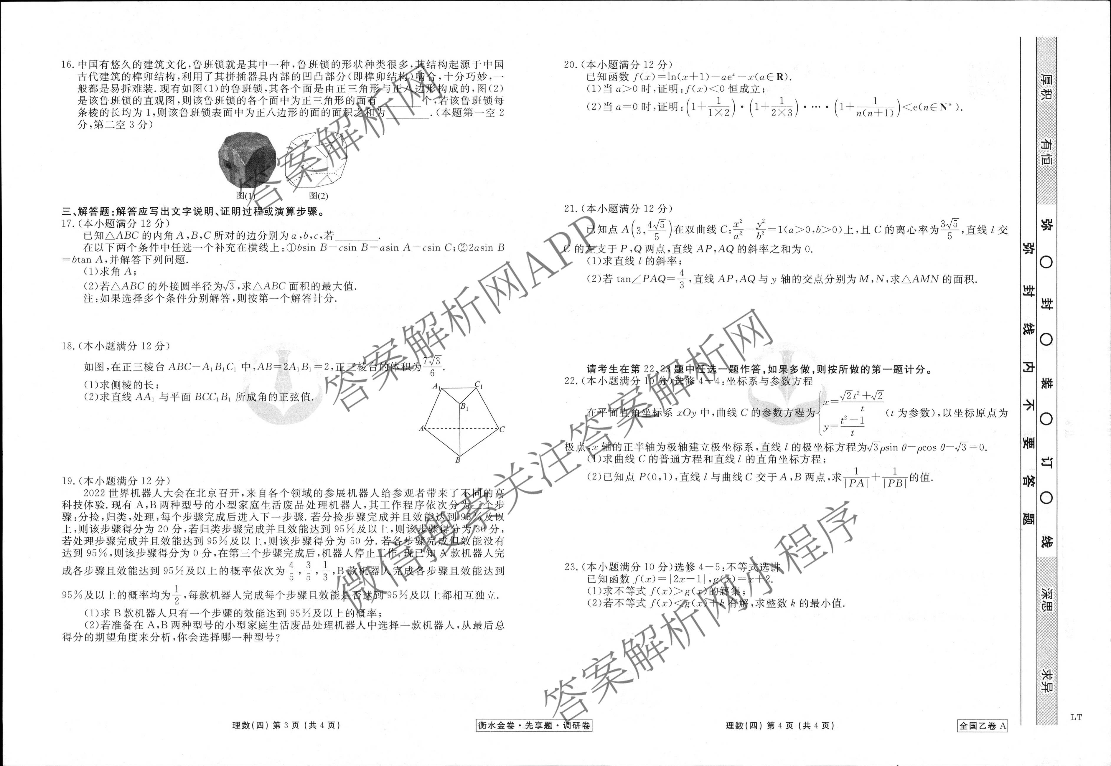 衡水金卷先享题 2023届调研卷 理数(全国乙卷A)(四)4试题,目前衡水金卷先享题答案网已经汇总了衡水金卷先享题 2023届调研卷 理数(全国乙卷A)(四)4试题的各科答案和试卷,获取更多衡水金卷先享题答案解析,请在关注本站。