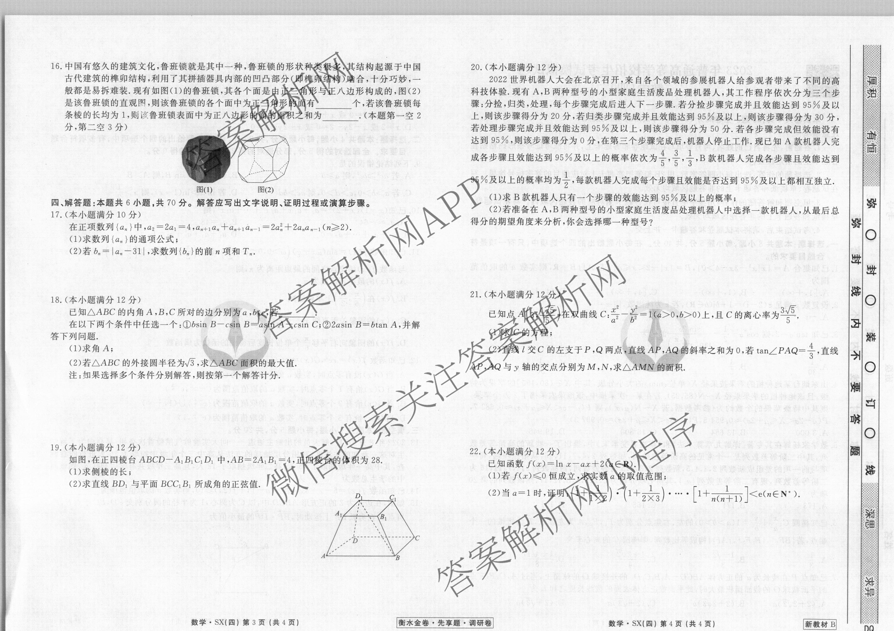 - 2023届(衡水金卷先享题) 调研卷 数学(新教材B·SX)(四)4答案