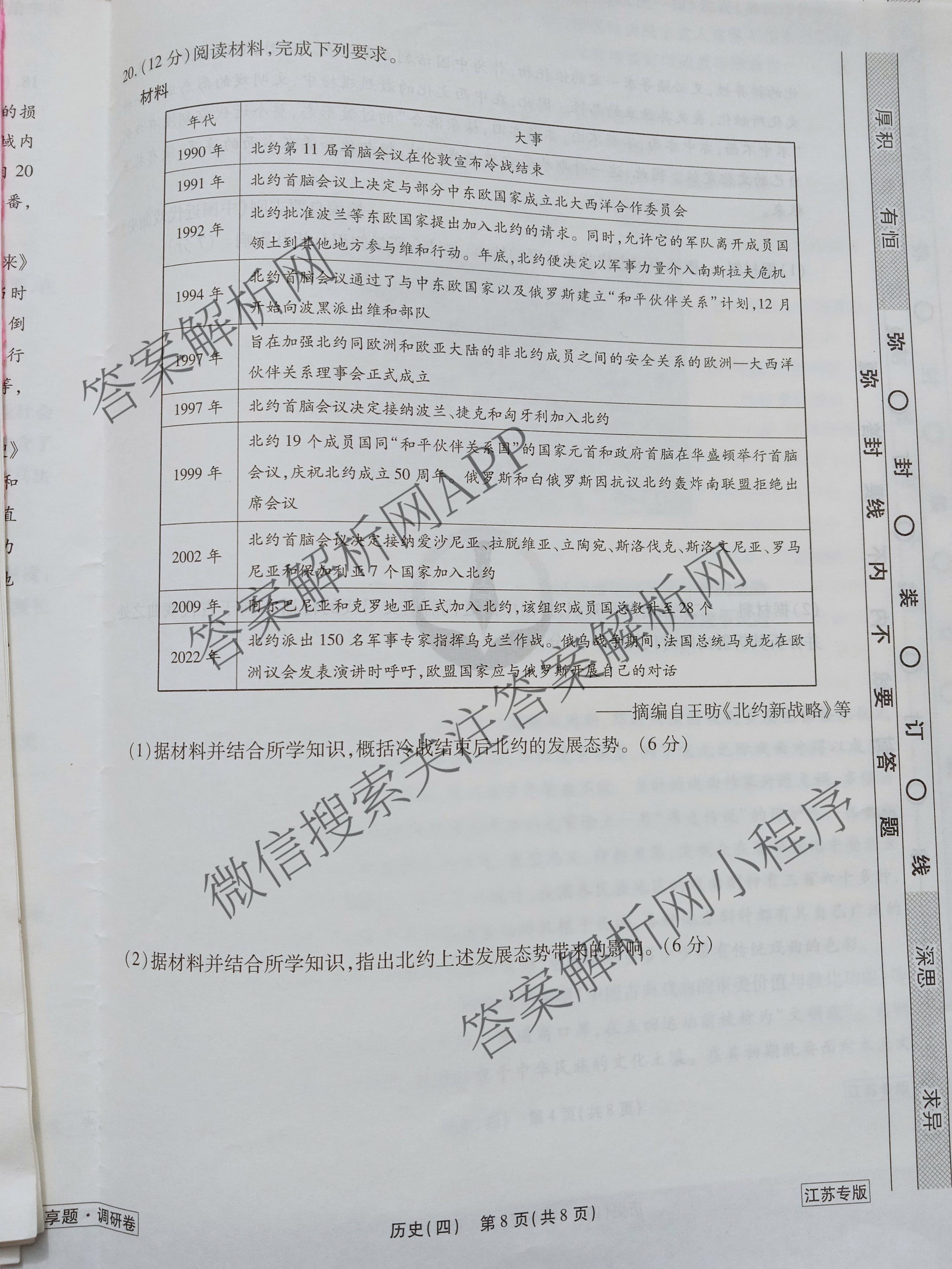 衡水金卷先享题2023届调研卷 历史(江苏专版)(四)4试题,目前衡水金卷先享题答案网已经汇总了衡水金卷先享题2023届调研卷 历史(江苏专版)(四)4试题的各科答案和试卷,获取更多衡水金卷先享题答案解析,请在关注本站。