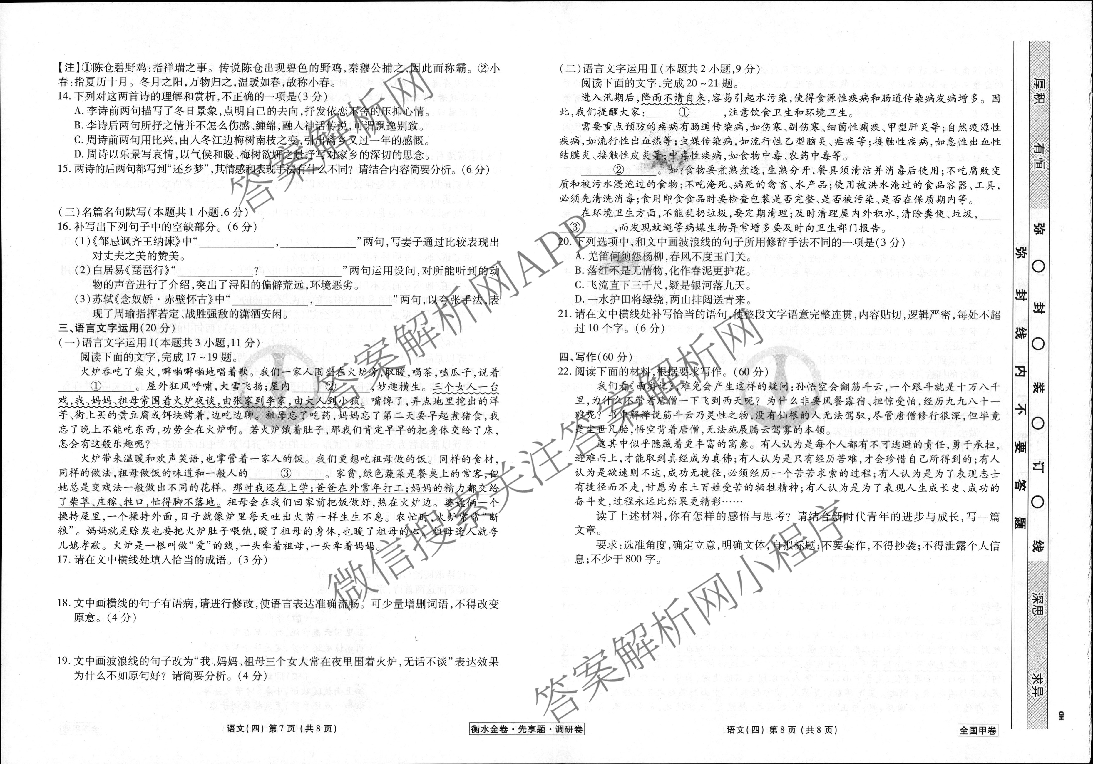 2023届(衡水金卷先享题) 调研卷 语文(全国甲卷)(四)4试题