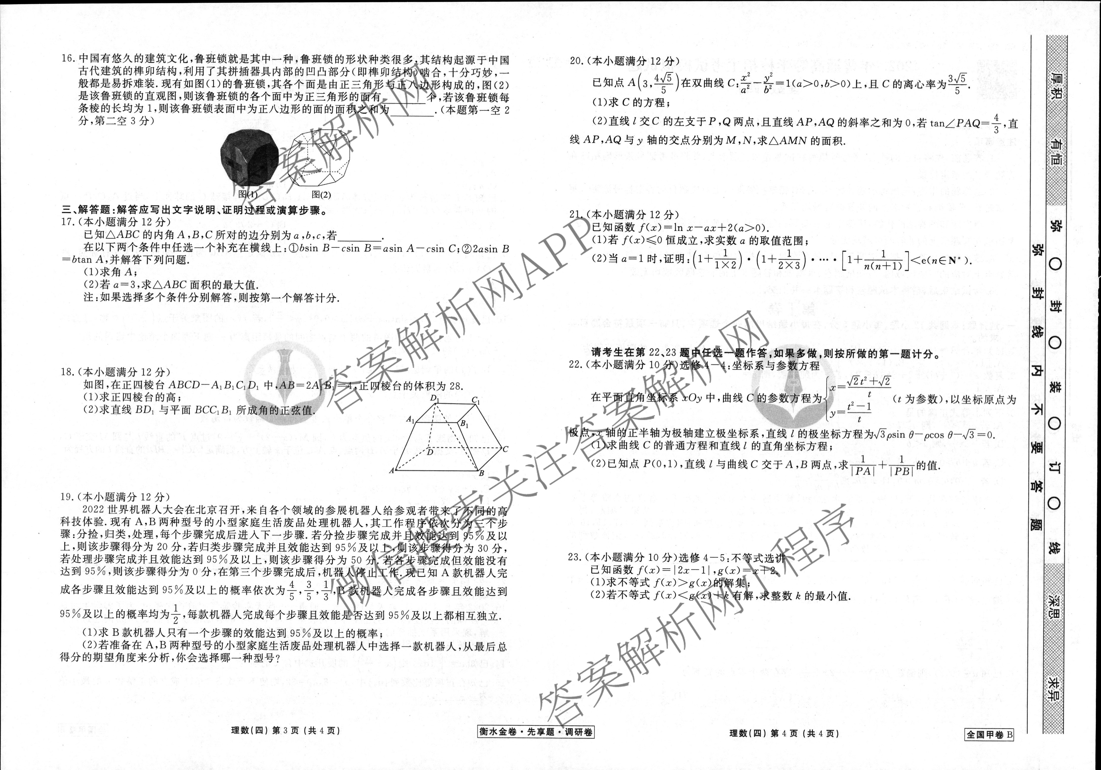 衡水金卷先享题 2023届调研卷 理数(全国甲卷B)(四)4试题,目前衡水金卷先享题答案网已经汇总了衡水金卷先享题 2023届调研卷 理数(全国甲卷B)(四)4试题的各科答案和试卷,获取更多衡水金卷先享题答案解析,请在关注本站。