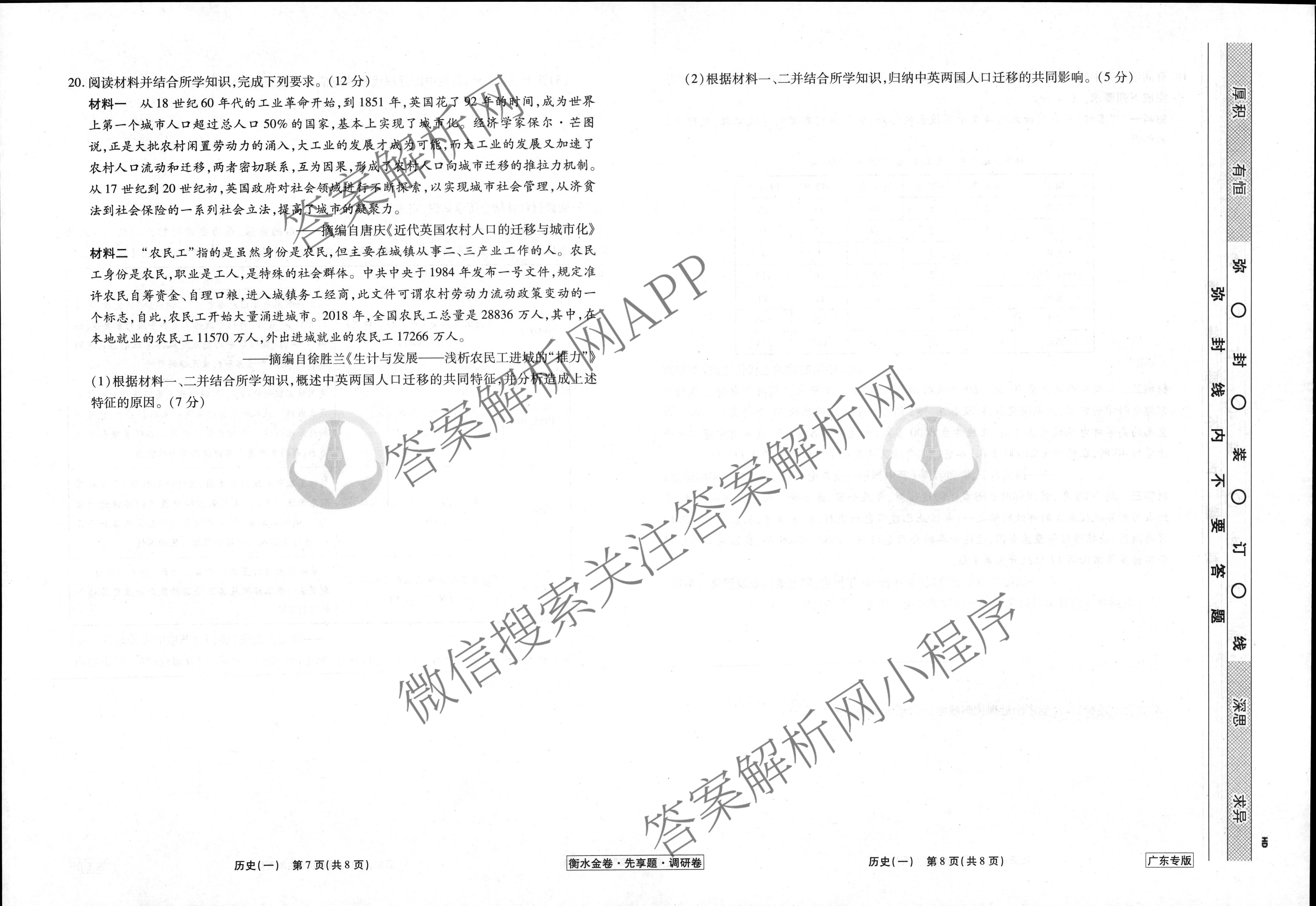 - [衡水金卷先享题] 2023届调研卷 历史(广东专版)(一)1答案