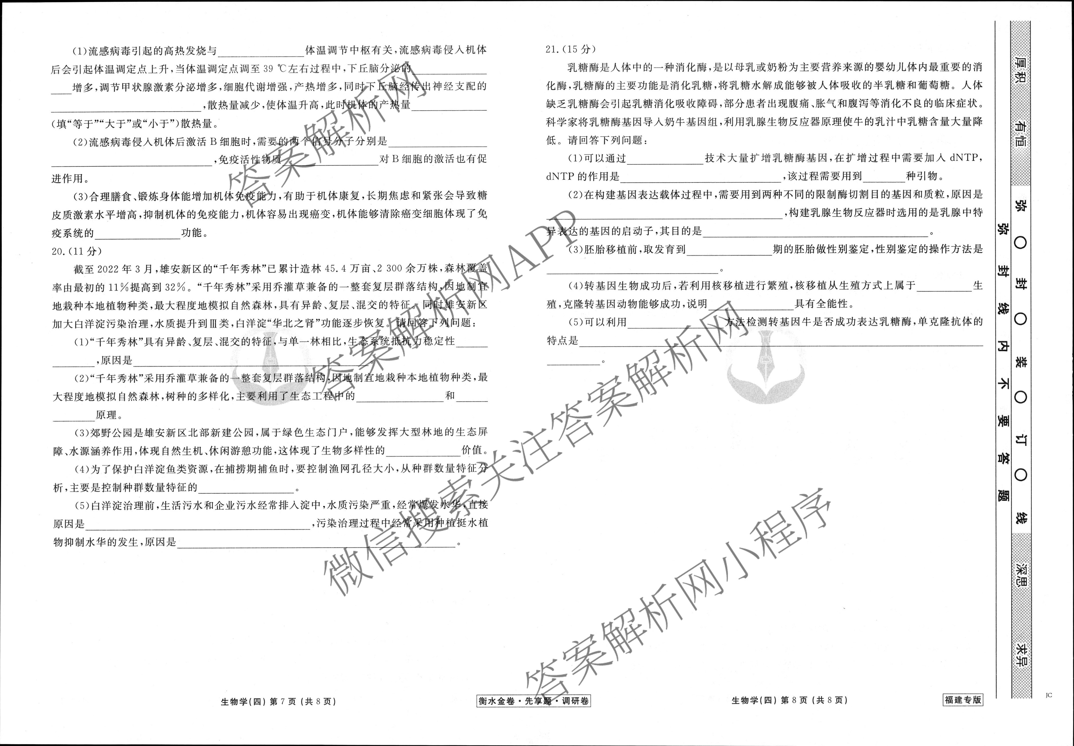 衡水金卷先享题 2023届调研卷 生物(福建专版)(四)4试题,目前衡水金卷先享题答案网已经汇总了衡水金卷先享题 2023届调研卷 生物(福建专版)(四)4试题的各科答案和试卷,获取更多衡水金卷先享题答案解析,请在关注本站。