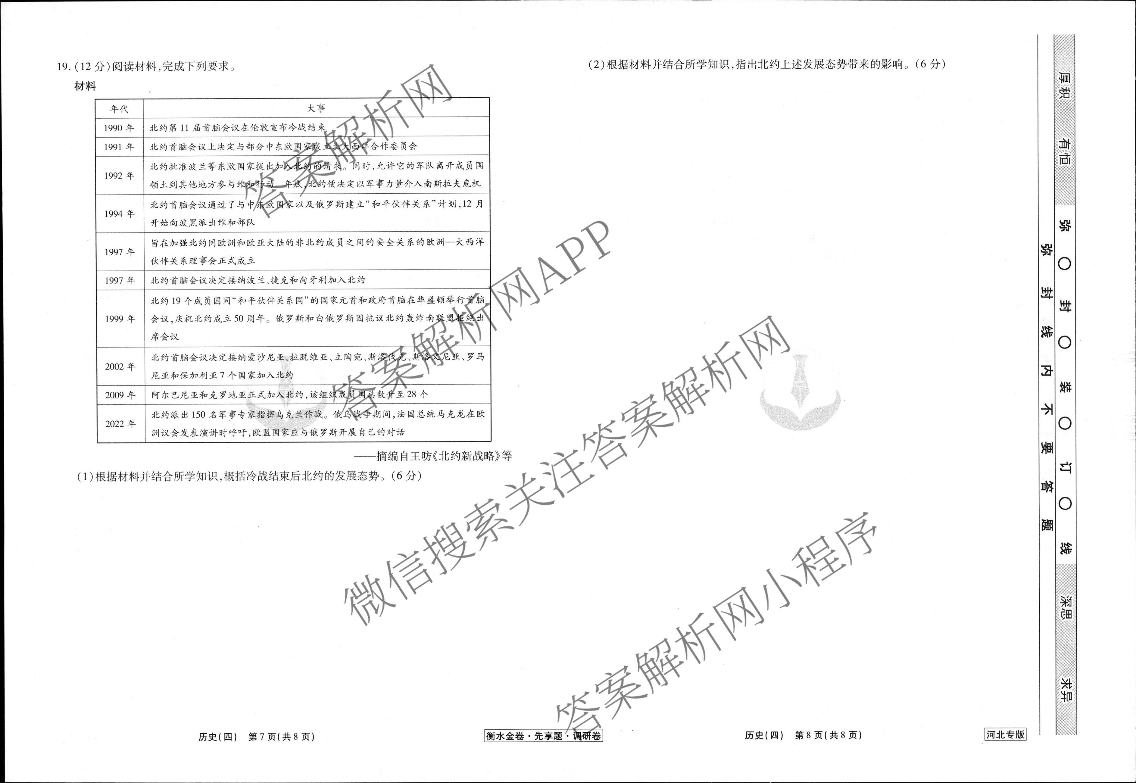 - (衡水金卷先享题) 2023届调研卷 历史(湖北专版)(四)4答案