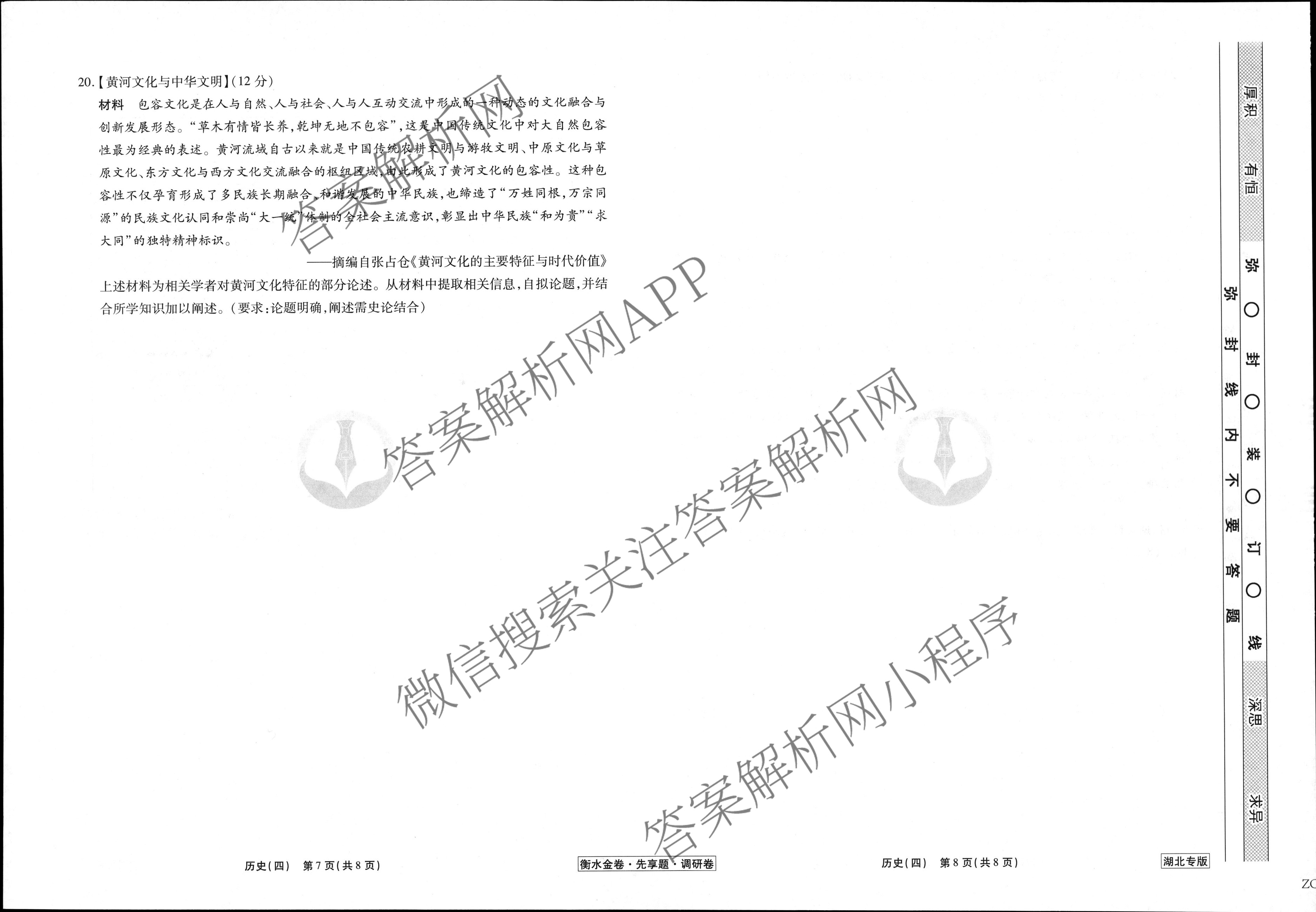 - (衡水金卷先享题) 2023届调研卷 历史(湖北专版)(四)4答案