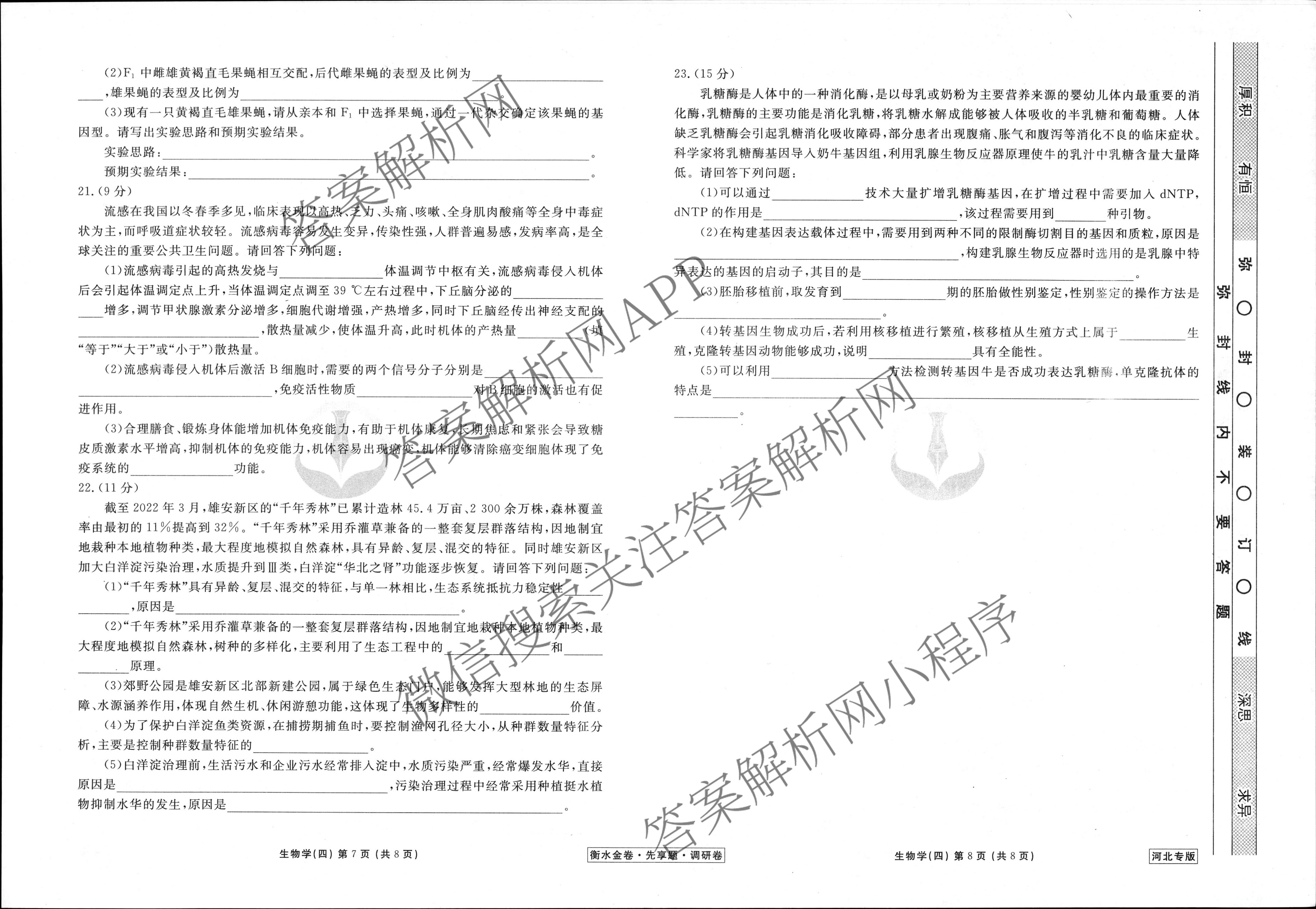 衡水金卷先享题 2023届调研卷 生物(河北专版)(四)4试题,目前衡水金卷先享题答案网已经汇总了衡水金卷先享题 2023届调研卷 生物(河北专版)(四)4试题的各科答案和试卷,获取更多衡水金卷先享题答案解析,请在关注本站。