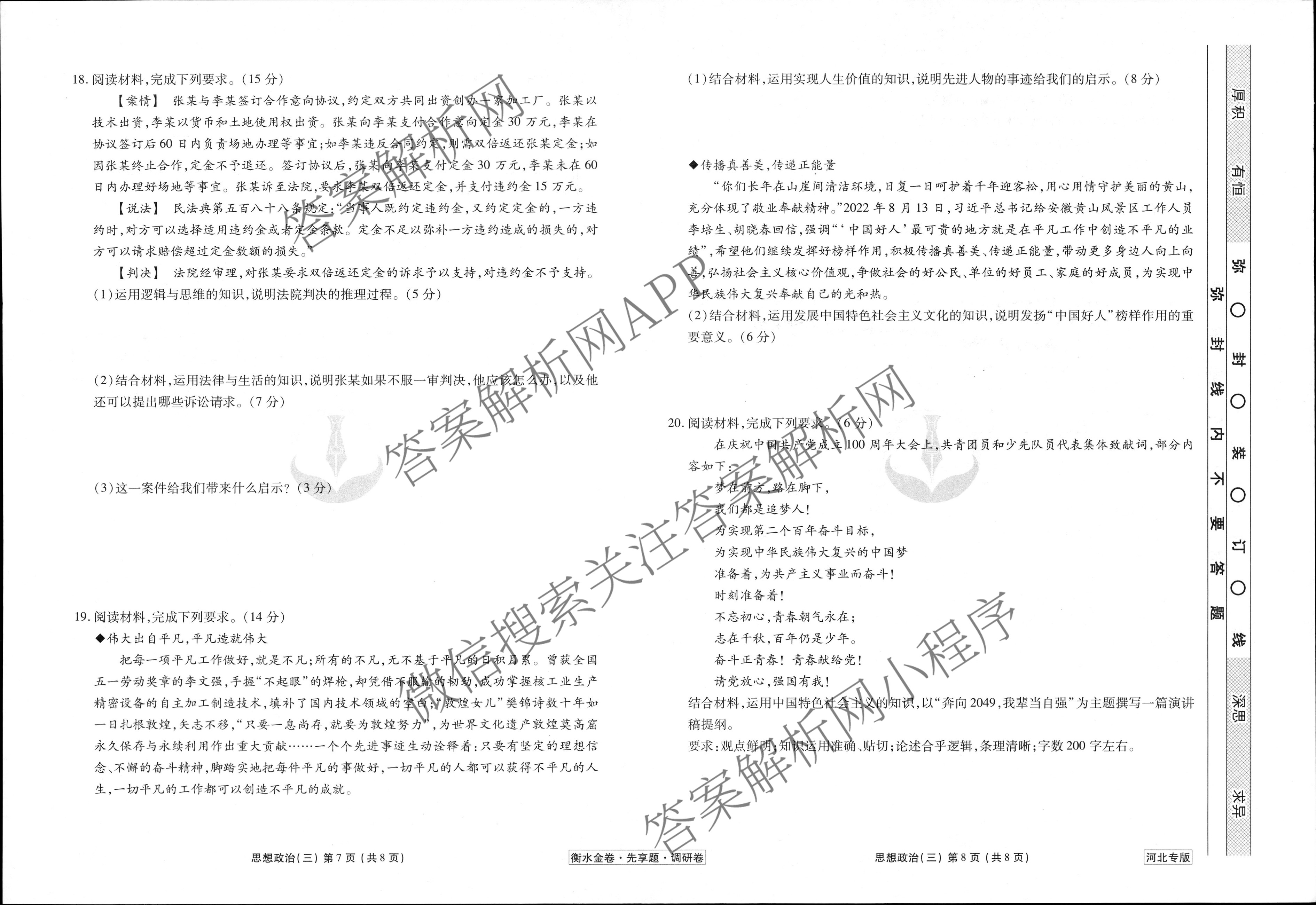 - [高三]衡水金卷先享题 2023届调研卷 政治(河北专版)(三)3答案