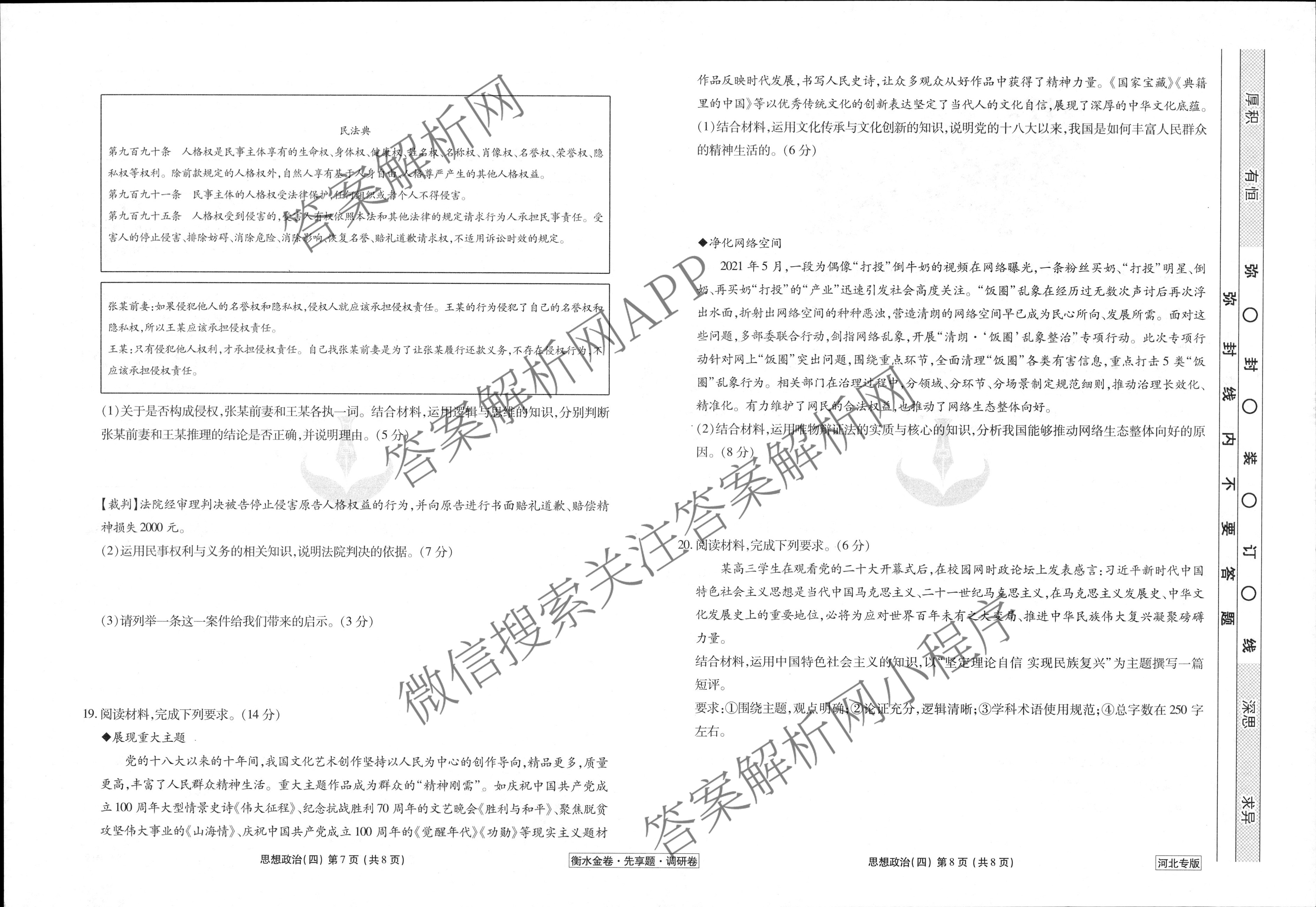 - (高三)[衡水金卷先享题] 2023届调研卷 政治(河北专版)(四)4答案