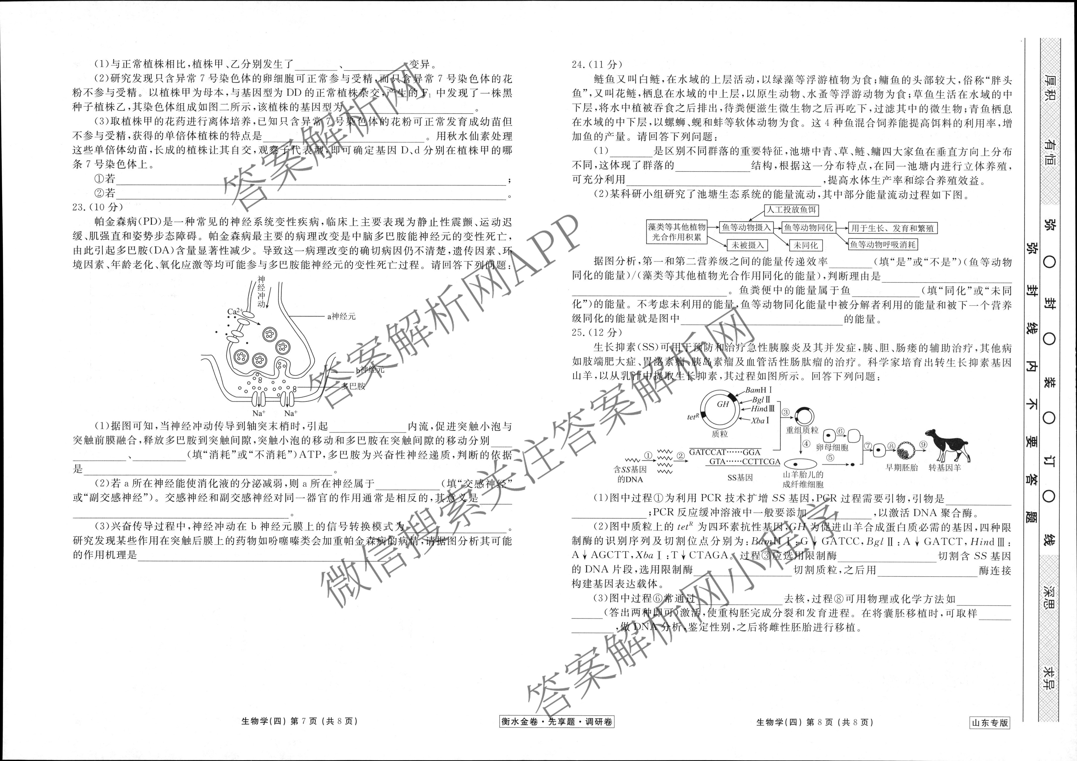 衡水金卷先享题 2023届调研卷 生物(山东专版)(四)4试题,目前衡水金卷先享题答案网已经汇总了衡水金卷先享题 2023届调研卷 生物(山东专版)(四)4试题的各科答案和试卷,获取更多衡水金卷先享题答案解析,请在关注本站。