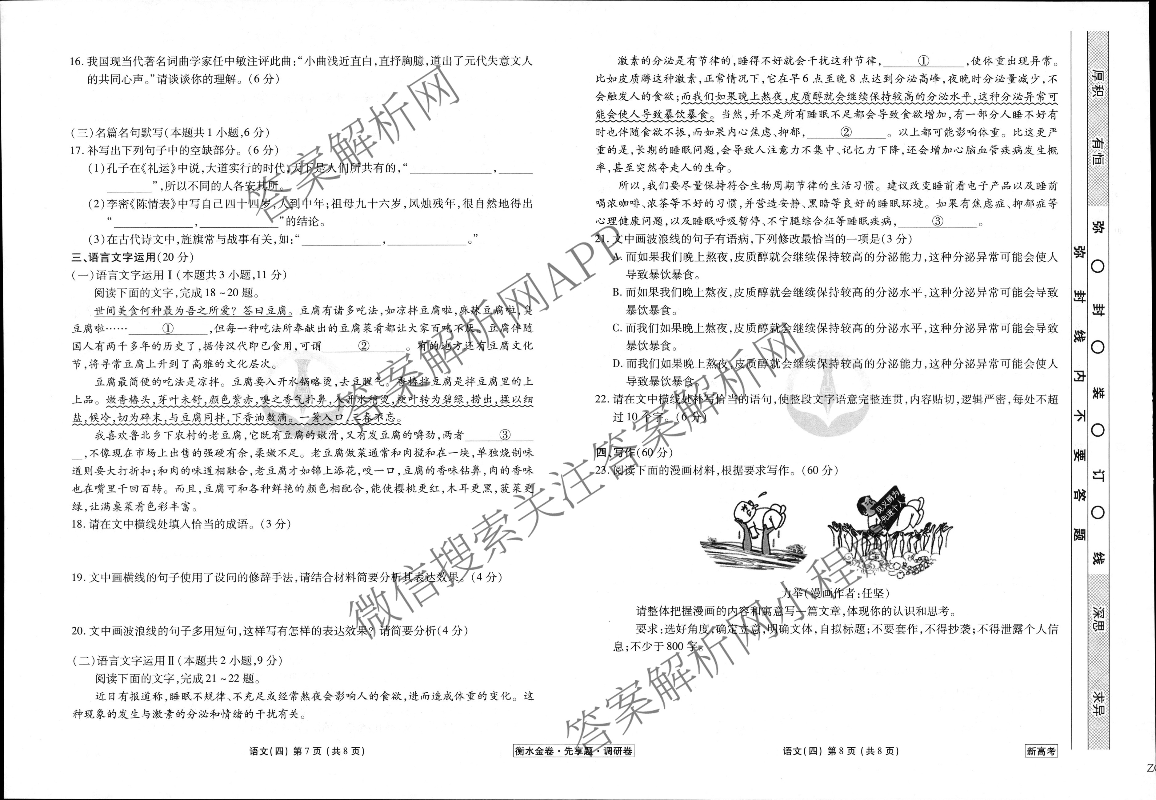 - (衡水金卷先享题) 2023届调研卷 语文(新高考)(四)4答案