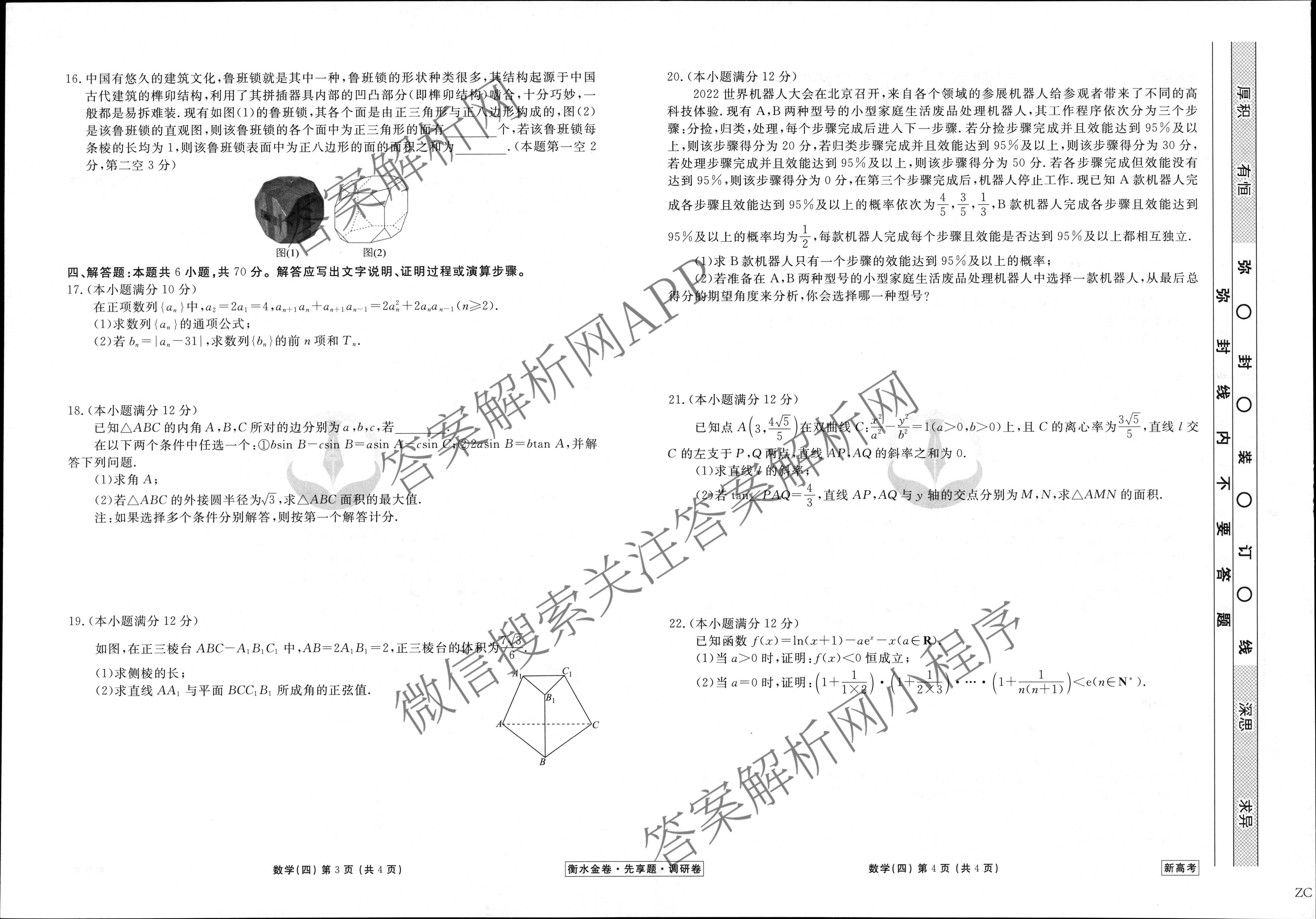 衡水金卷先享题 2023届调研卷 数学(新高考)(四)4试题,目前衡水金卷先享题答案网已经汇总了衡水金卷先享题 2023届调研卷 数学(新高考)(四)4试题的各科答案和试卷,获取更多衡水金卷先享题答案解析,请在关注本站。