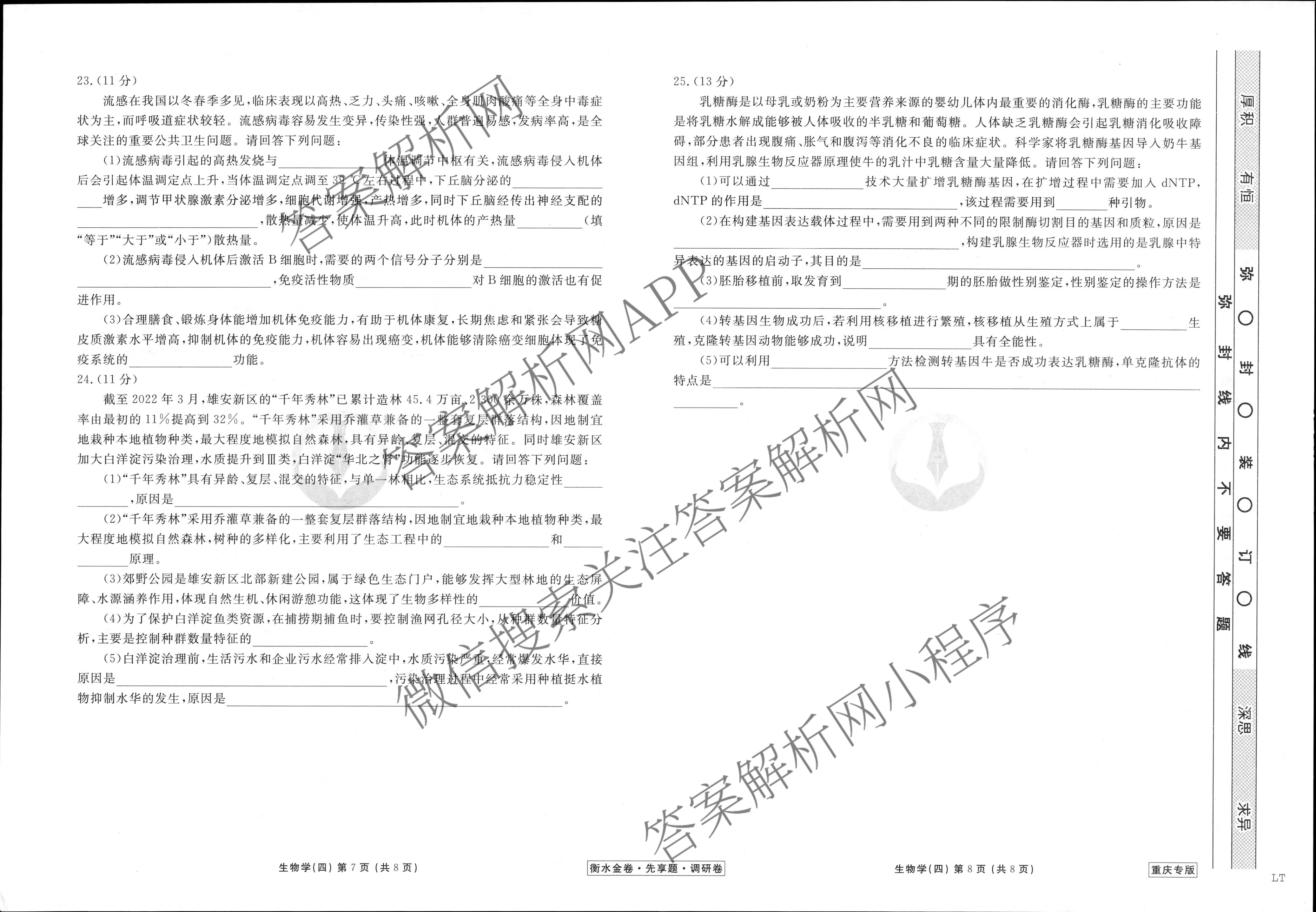 衡水金卷先享题 2023届调研卷 生物(重庆专版)(四)4试题,目前衡水金卷先享题答案网已经汇总了衡水金卷先享题 2023届调研卷 生物(重庆专版)(四)4试题的各科答案和试卷,获取更多衡水金卷先享题答案解析,请在关注本站。