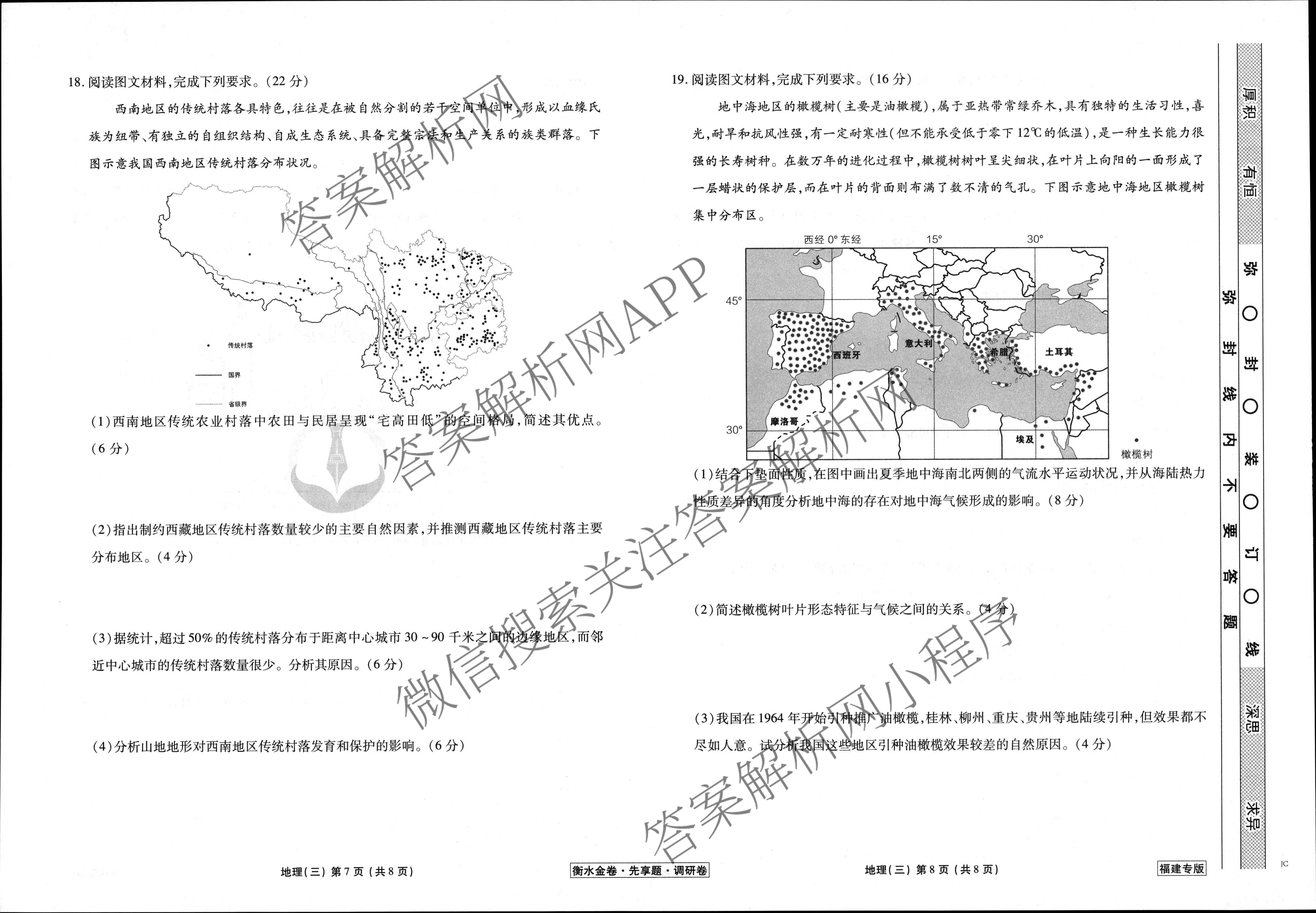 - (高三)(衡水金卷先享题) 2023届调研卷 地理(福建专版)(三)3答案