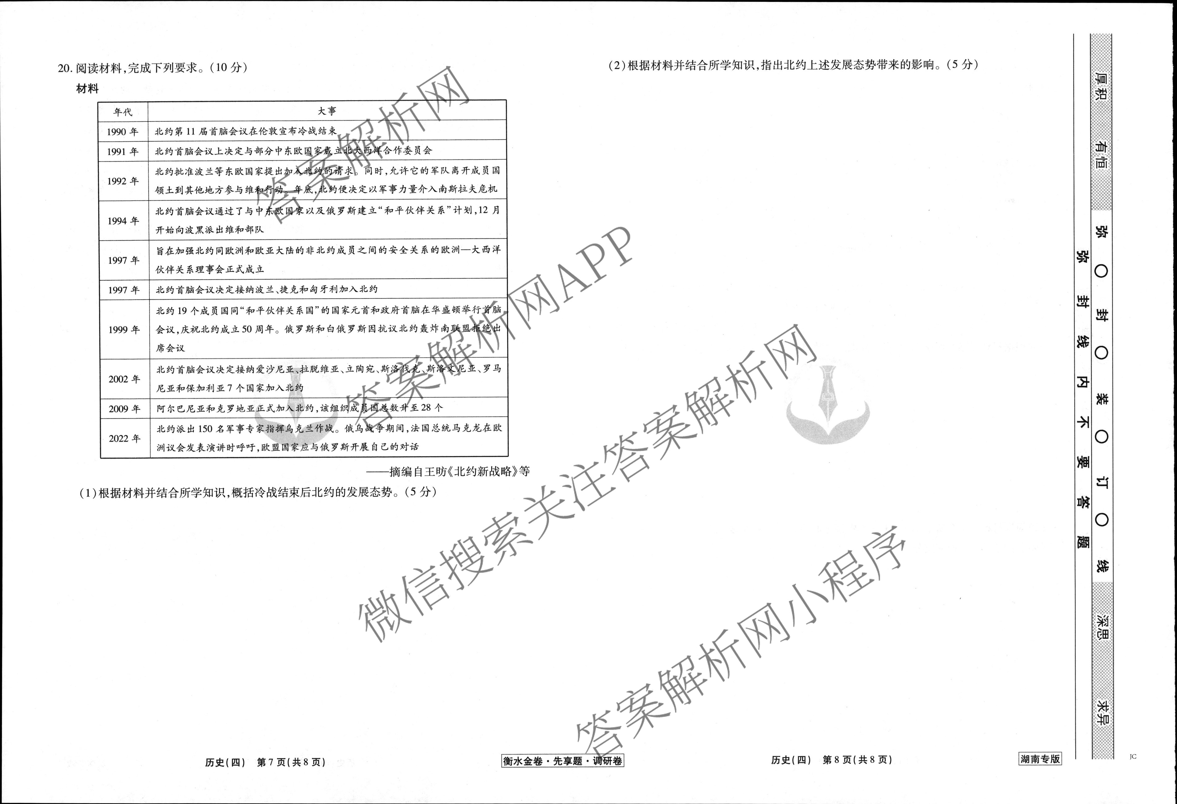 衡水金卷先享题 2023届调研卷 历史(湖南专版)(四)4试题,目前衡水金卷先享题答案网已经汇总了衡水金卷先享题 2023届调研卷 历史(湖南专版)(四)4试题的各科答案和试卷,获取更多衡水金卷先享题答案解析,请在关注本站。