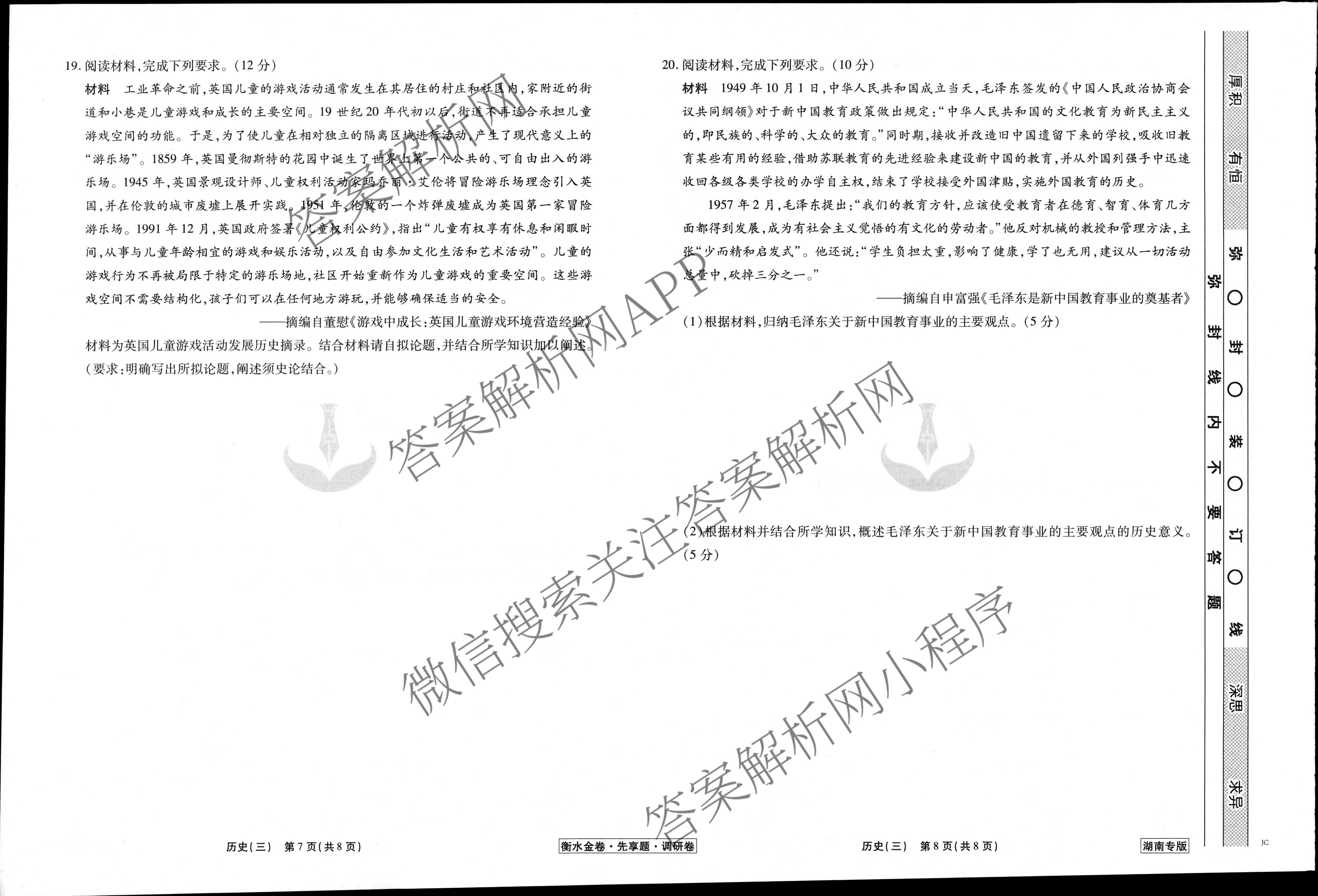 衡水金卷先享题 2023届调研卷 历史(湖南专版)(三)3试题,目前衡水金卷先享题答案网已经汇总了衡水金卷先享题 2023届调研卷 历史(湖南专版)(三)3试题的各科答案和试卷,获取更多衡水金卷先享题答案解析,请在关注本站。