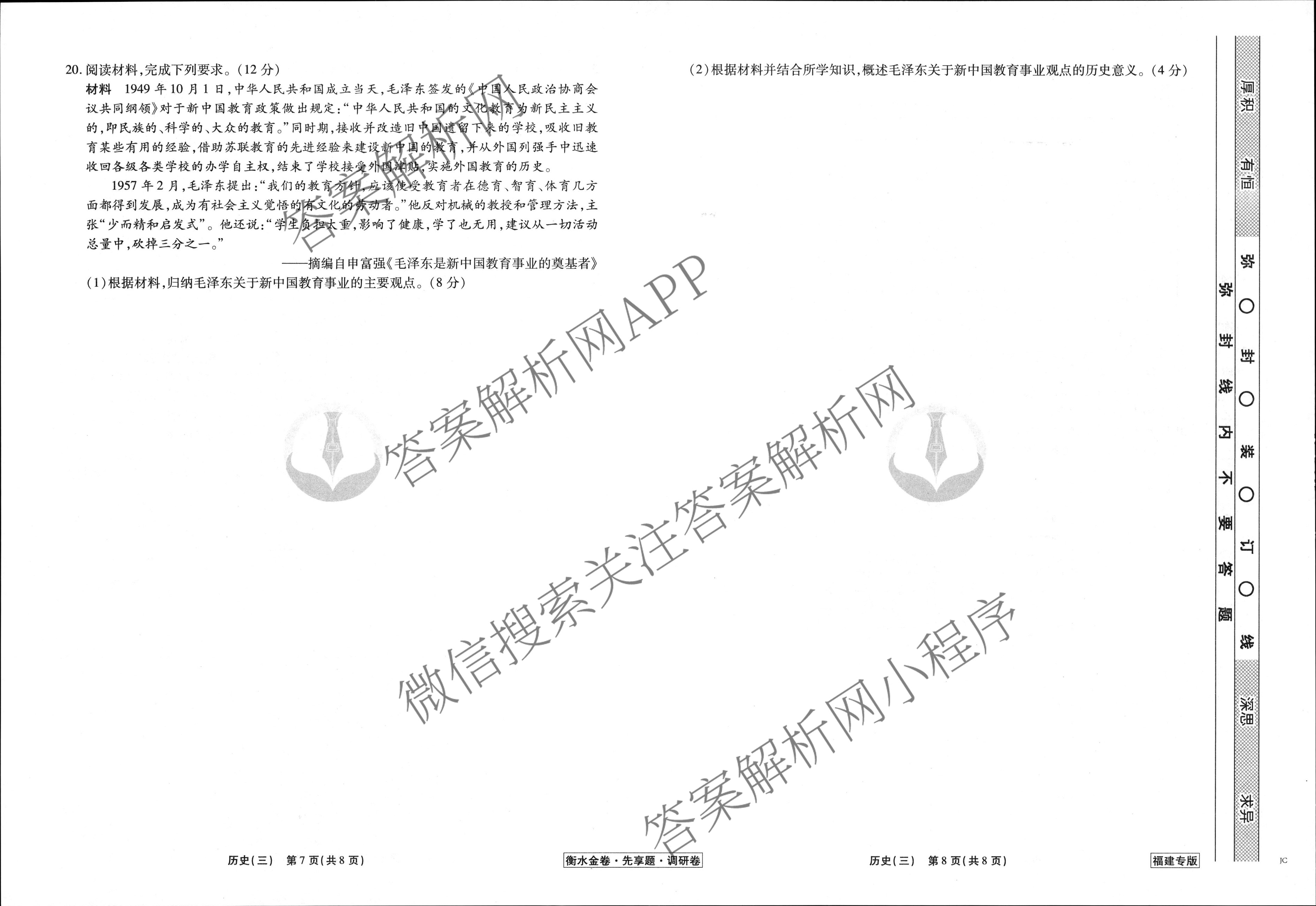 - [高三][衡水金卷先享题] 2023届调研卷 历史(福建专版)(三)3答案