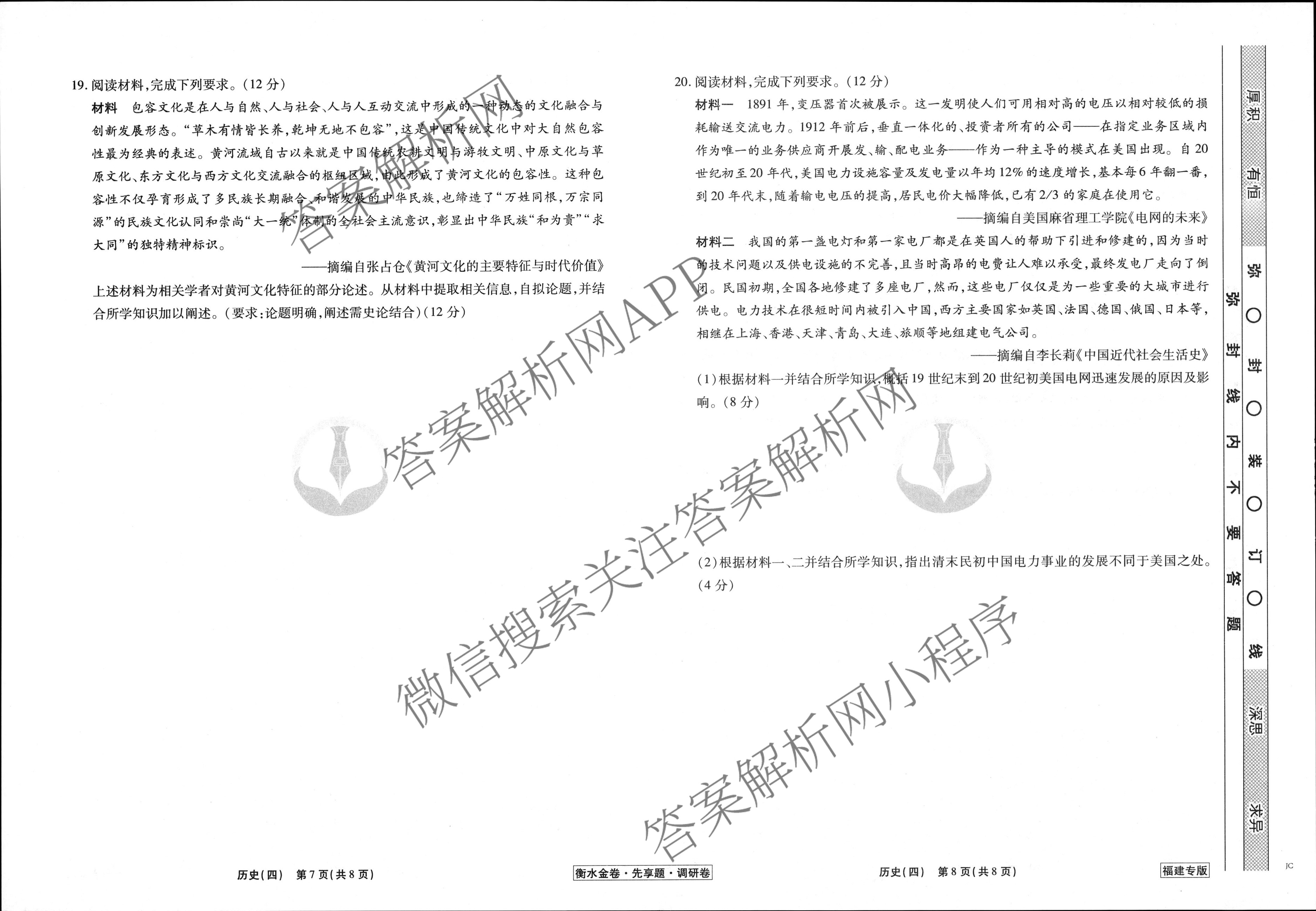 - (衡水金卷先享题) 2023届调研卷 历史(湖北专版)(四)4答案