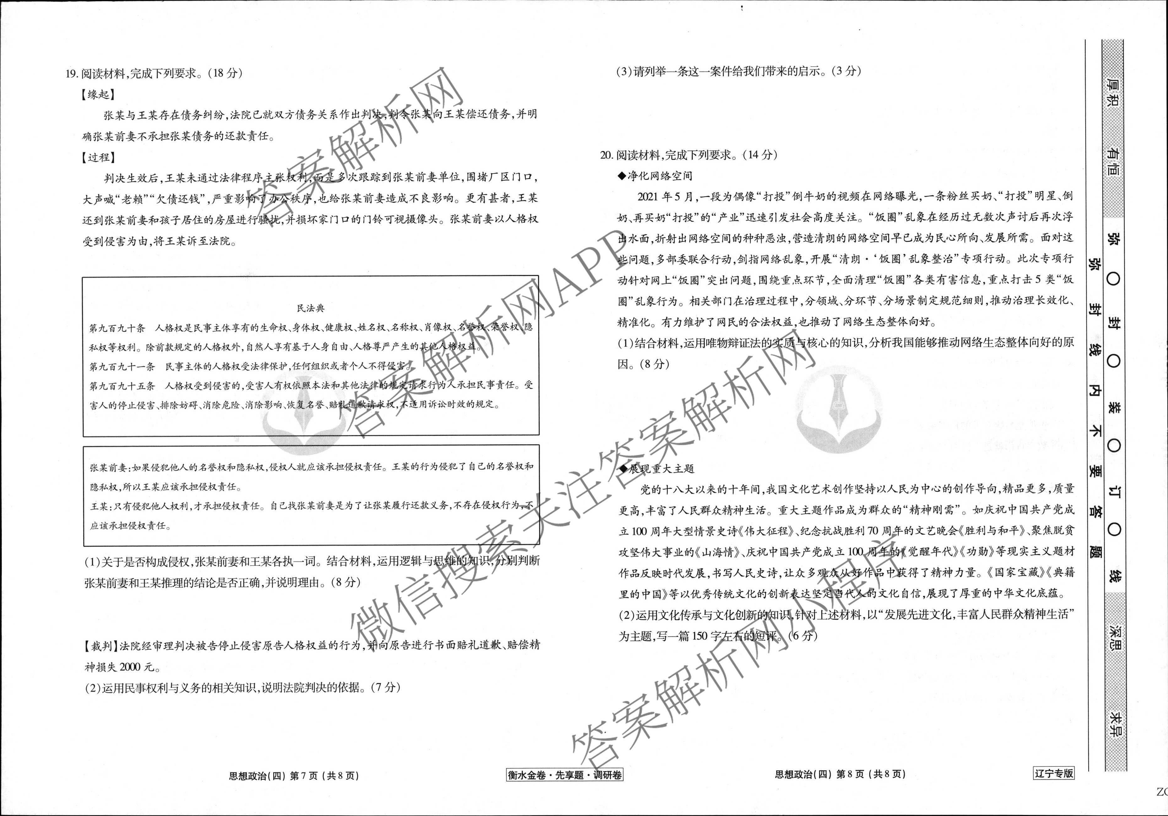 - [高三][衡水金卷先享题] 2023届调研卷 政治(辽宁专版)(四)4答案