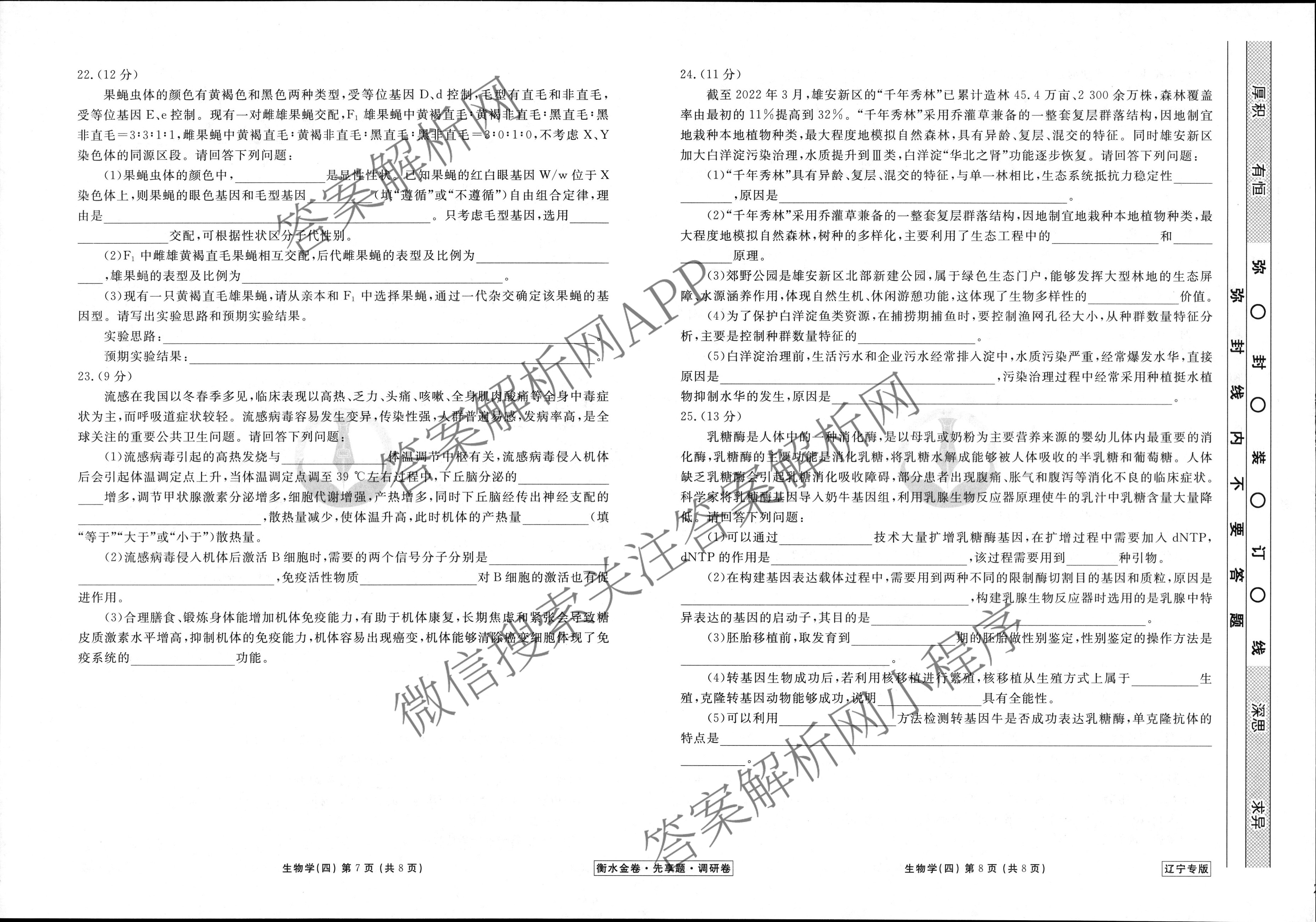 衡水金卷先享题 2023届调研卷 生物(辽宁专版)(四)4试题,目前衡水金卷先享题答案网已经汇总了衡水金卷先享题 2023届调研卷 生物(辽宁专版)(四)4试题的各科答案和试卷,获取更多衡水金卷先享题答案解析,请在关注本站。