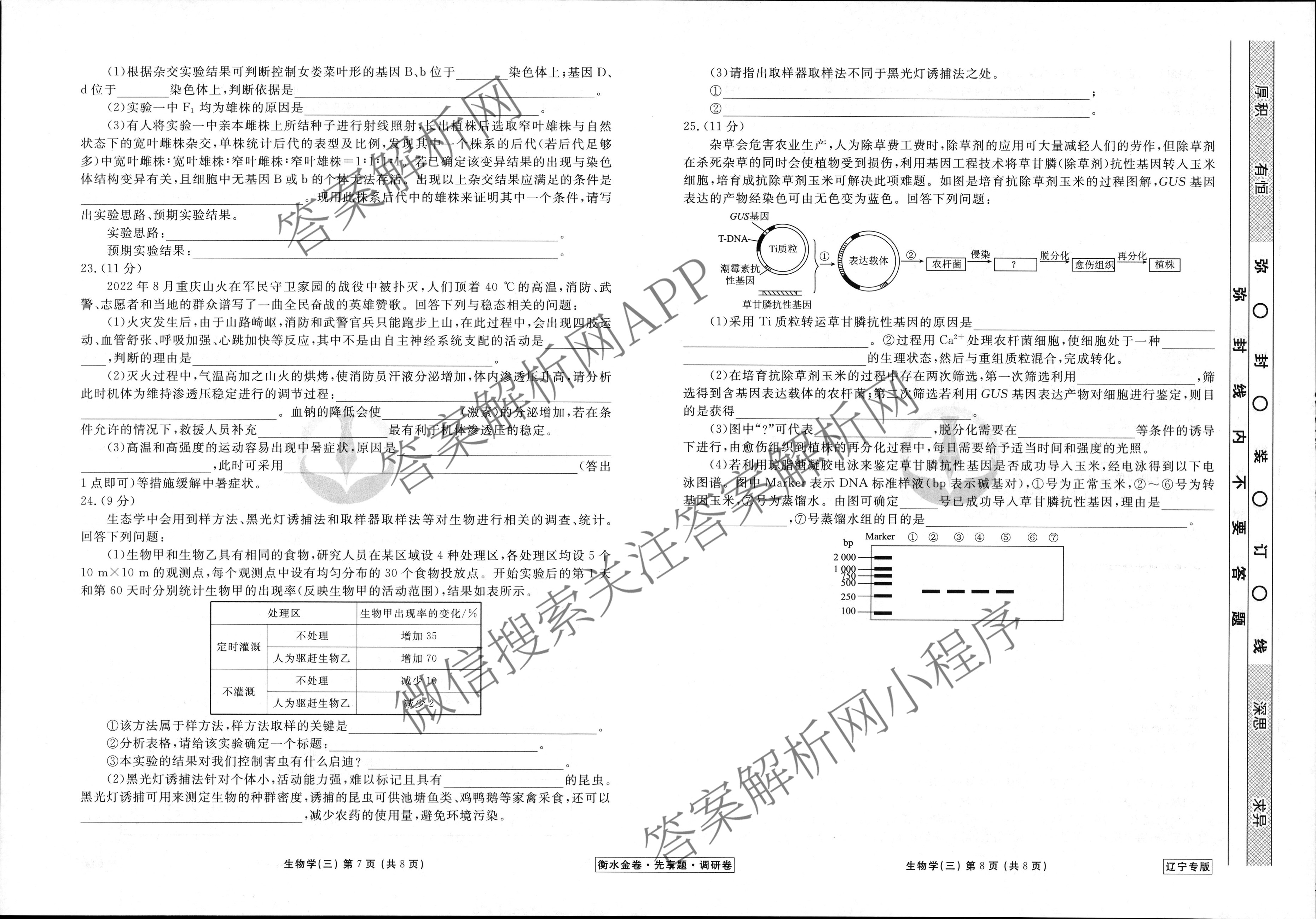 衡水金卷先享题 2023届调研卷 生物(辽宁专版)(三)3试题,目前衡水金卷先享题答案网已经汇总了衡水金卷先享题 2023届调研卷 生物(辽宁专版)(三)3试题的各科答案和试卷,获取更多衡水金卷先享题答案解析,请在关注本站。