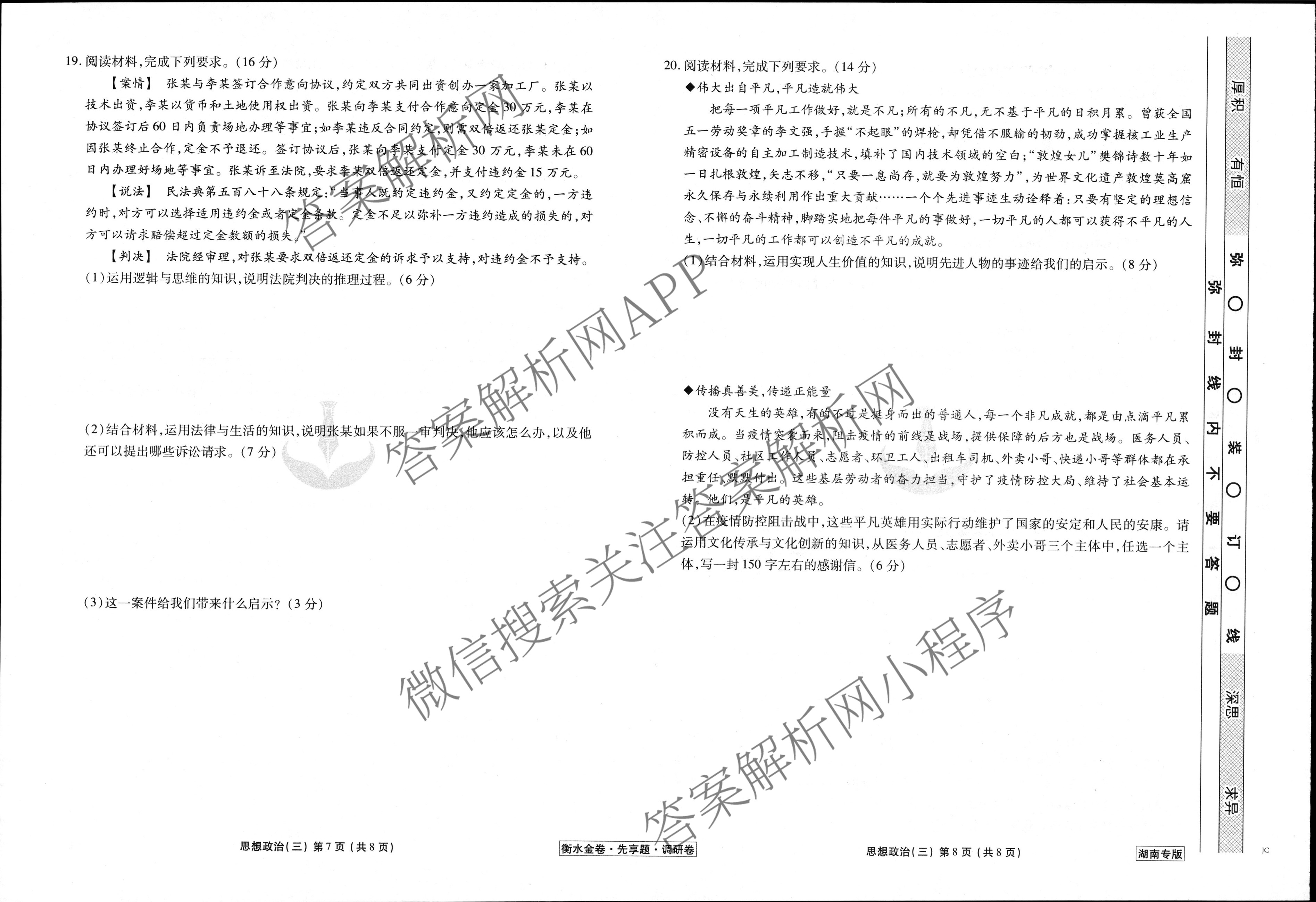 衡水金卷先享题 2023届调研卷 政治(湖南专版)(三)3试题,目前衡水金卷先享题答案网已经汇总了衡水金卷先享题 2023届调研卷 政治(湖南专版)(三)3试题的各科答案和试卷,获取更多衡水金卷先享题答案解析,请在关注本站。
