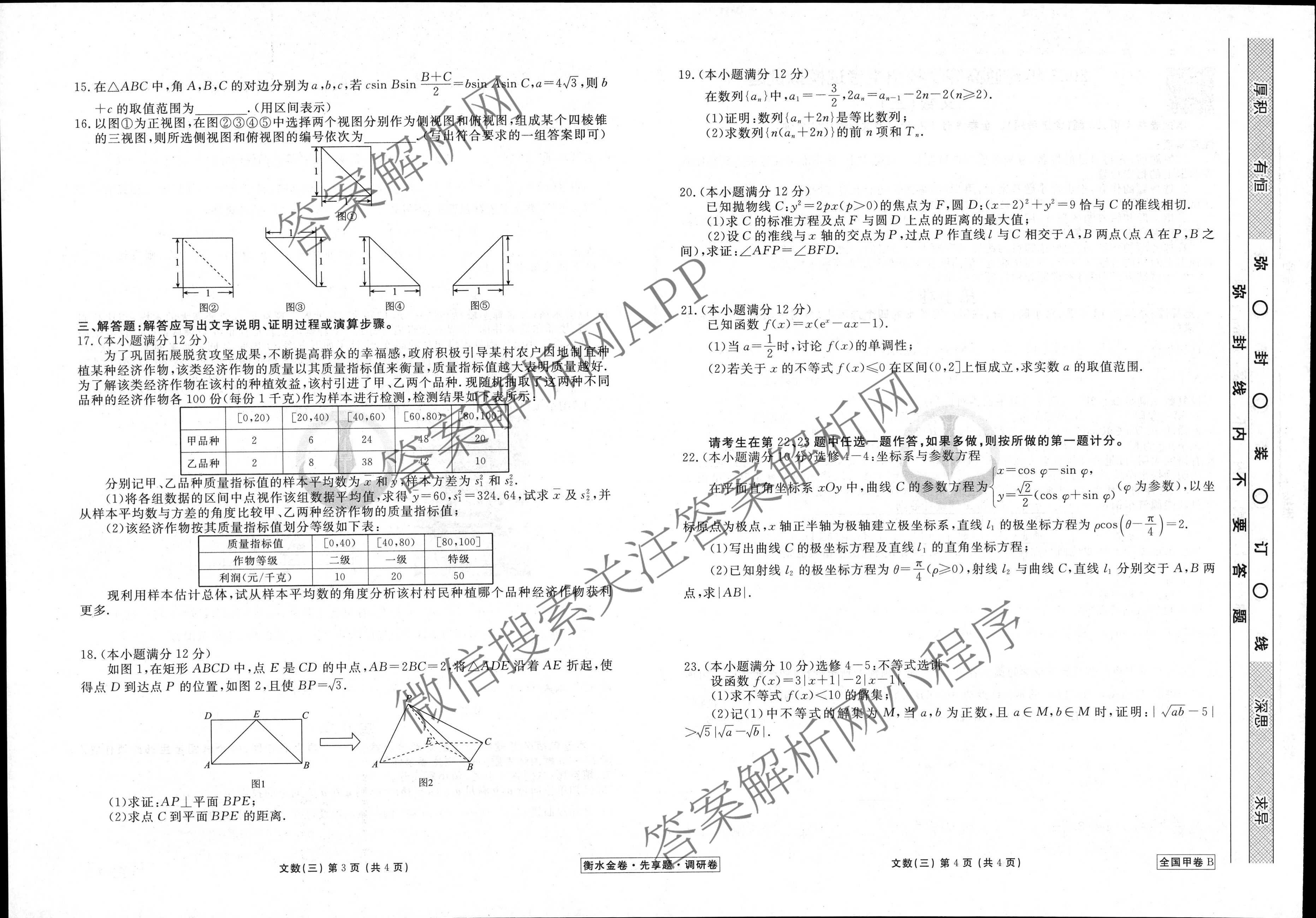 - (高三)衡水金卷先享题 2023届调研卷 文数(全国乙卷A)(三)3答案