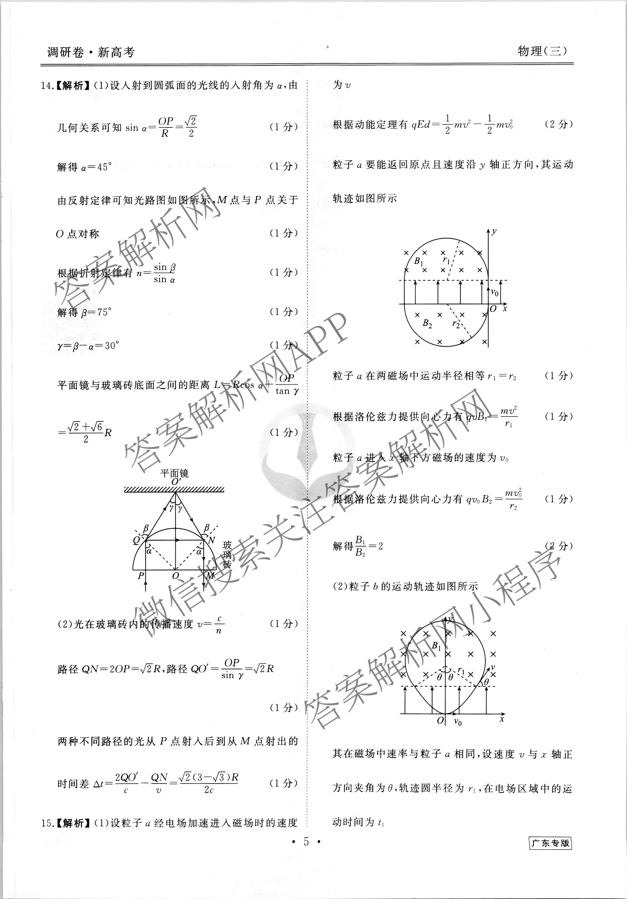 2023届高三[衡水金卷先享题] 调研卷 物理(广东专版)(三)3答案