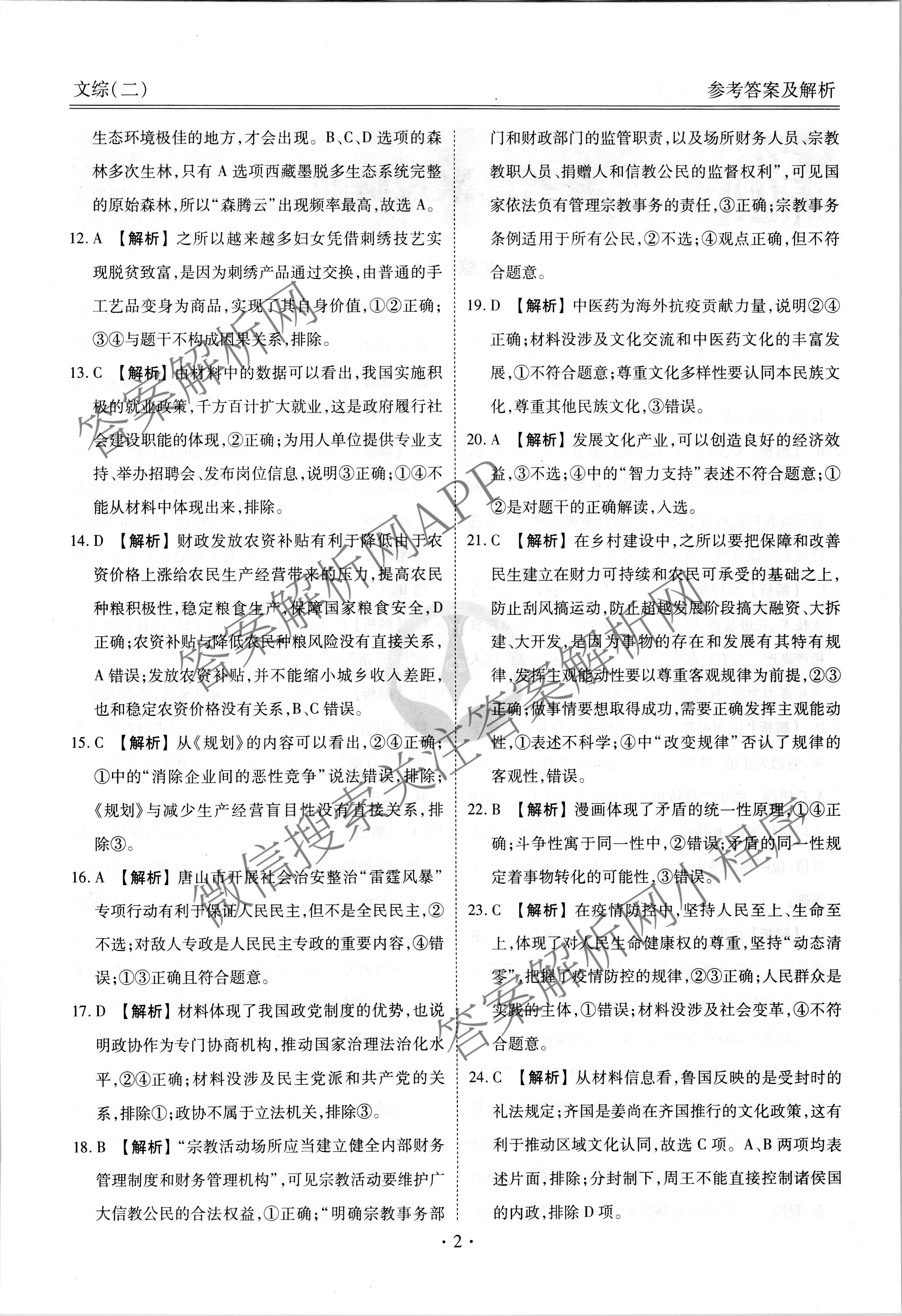 2023届[衡水金卷先享题] 分科综合卷 全国甲卷 文综(二)2答案