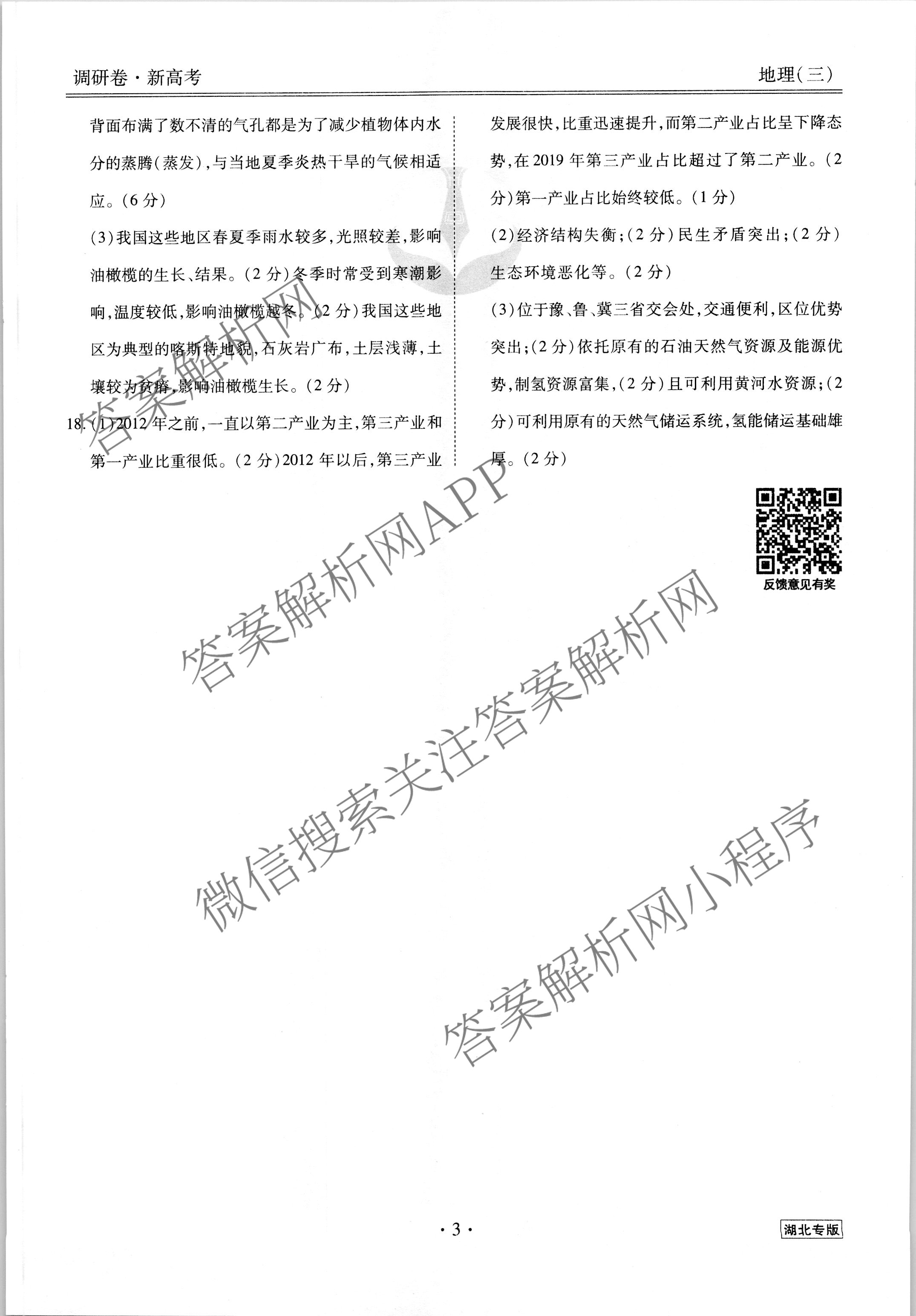 [高三](衡水金卷先享题) 2023届调研卷 地理(湖北专版)(三)3答案
