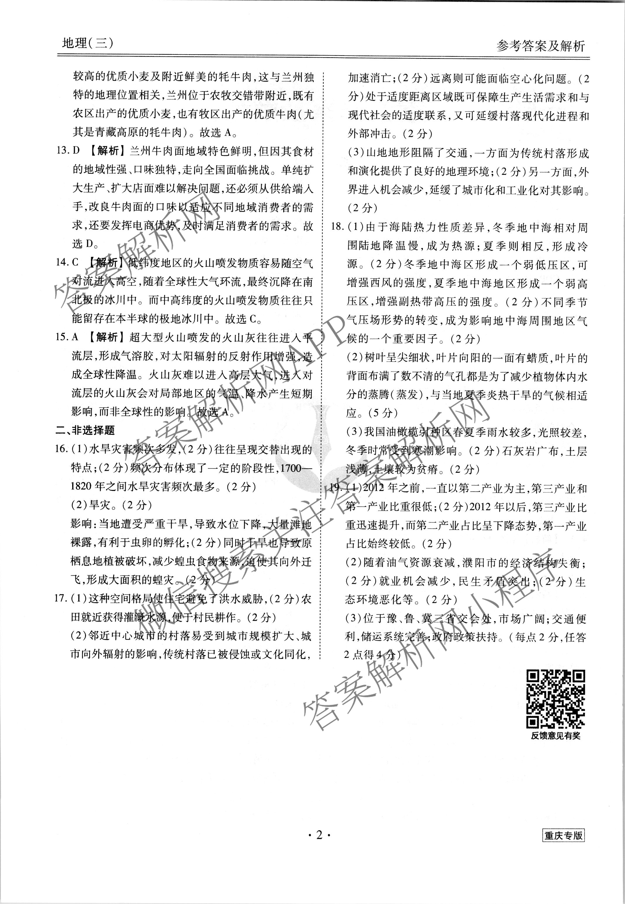 2023届[高三][衡水金卷先享题] 调研卷 地理(重庆专版)(三)3答案