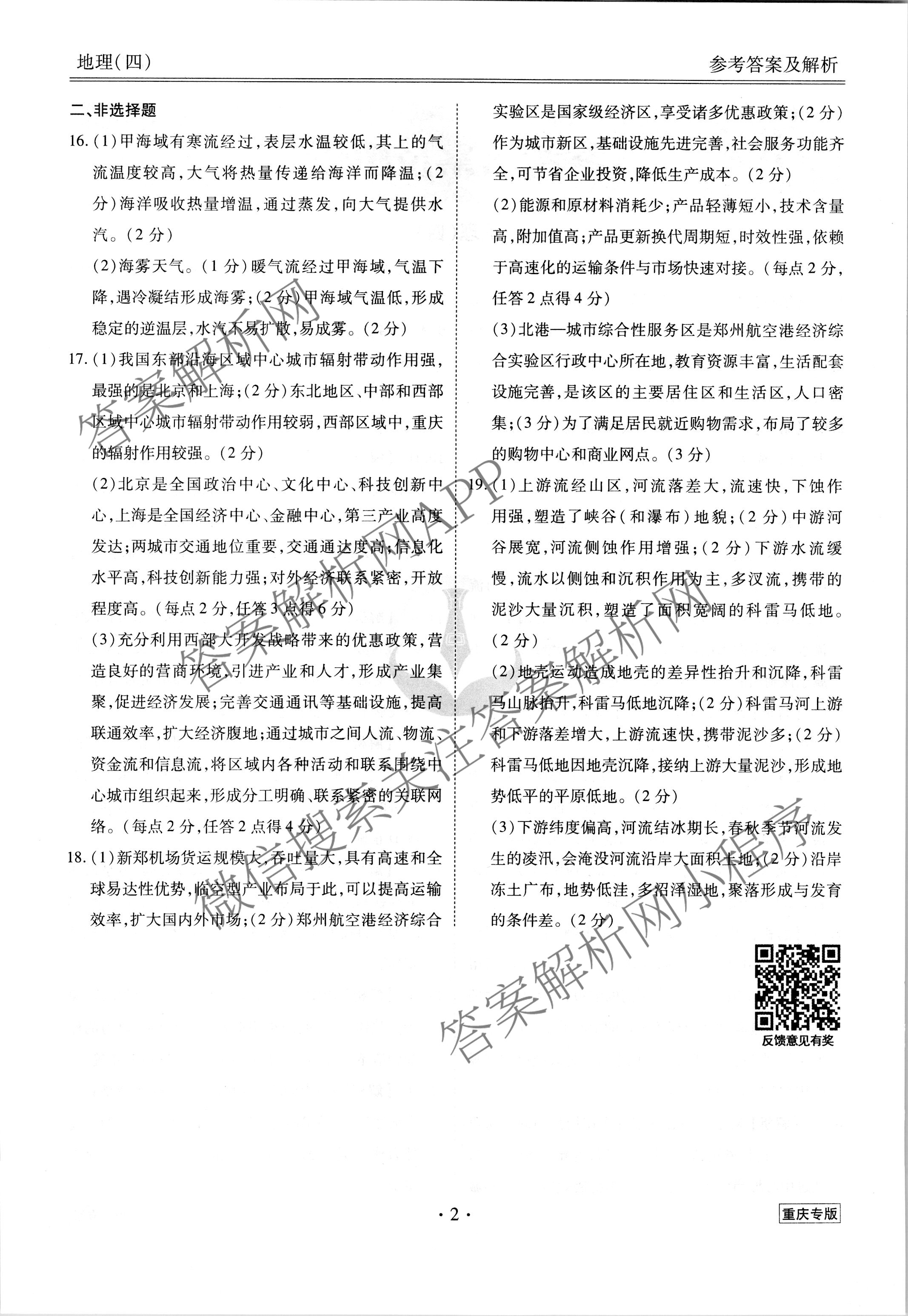 - 2023届高三(衡水金卷先享题) 调研卷 地理(重庆专版)(四)4答案