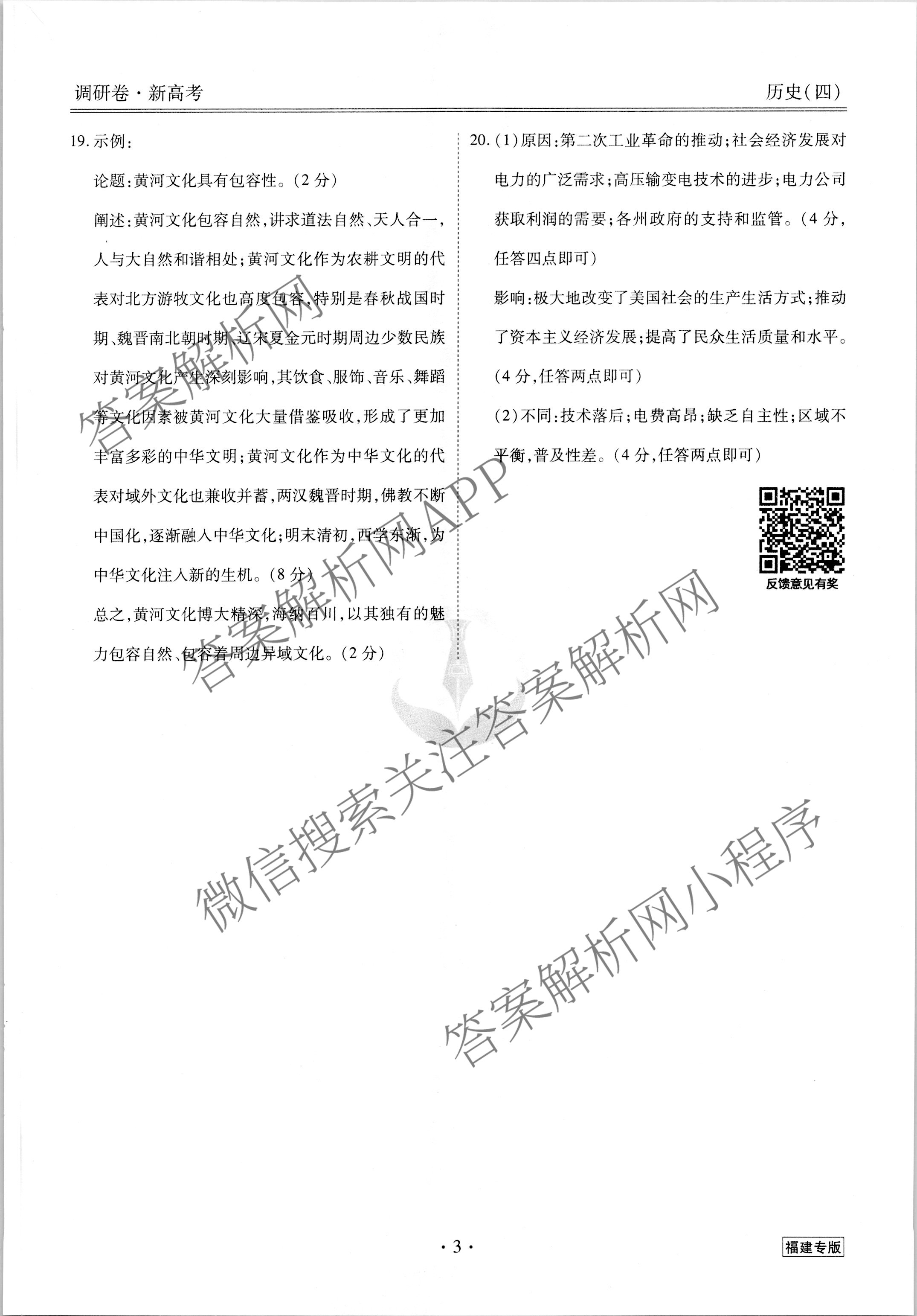 2023届[衡水金卷先享题] 调研卷 历史(福建专版)(四)4答案