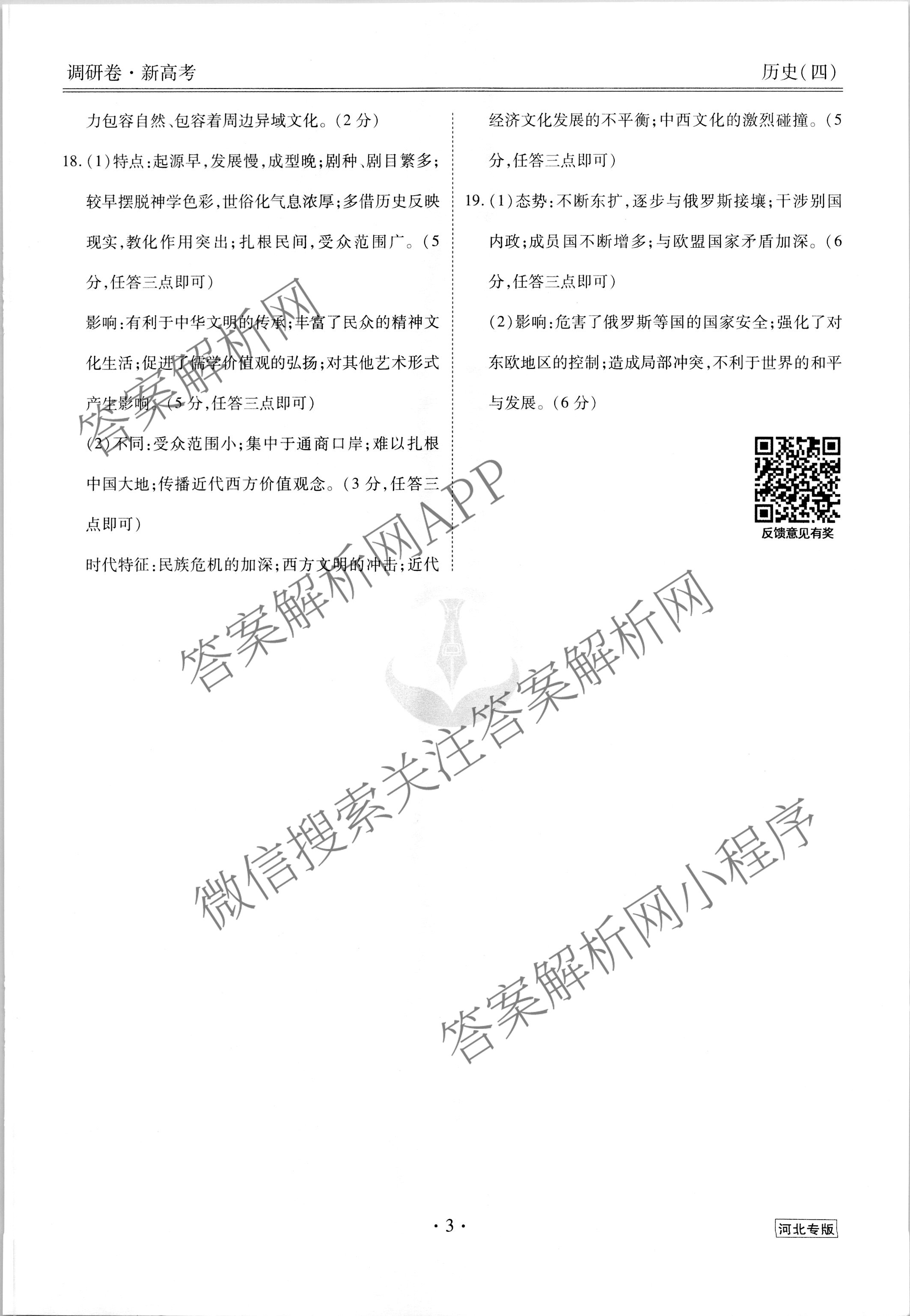 - (衡水金卷先享题) 2023届调研卷 历史(湖北专版)(四)4答案