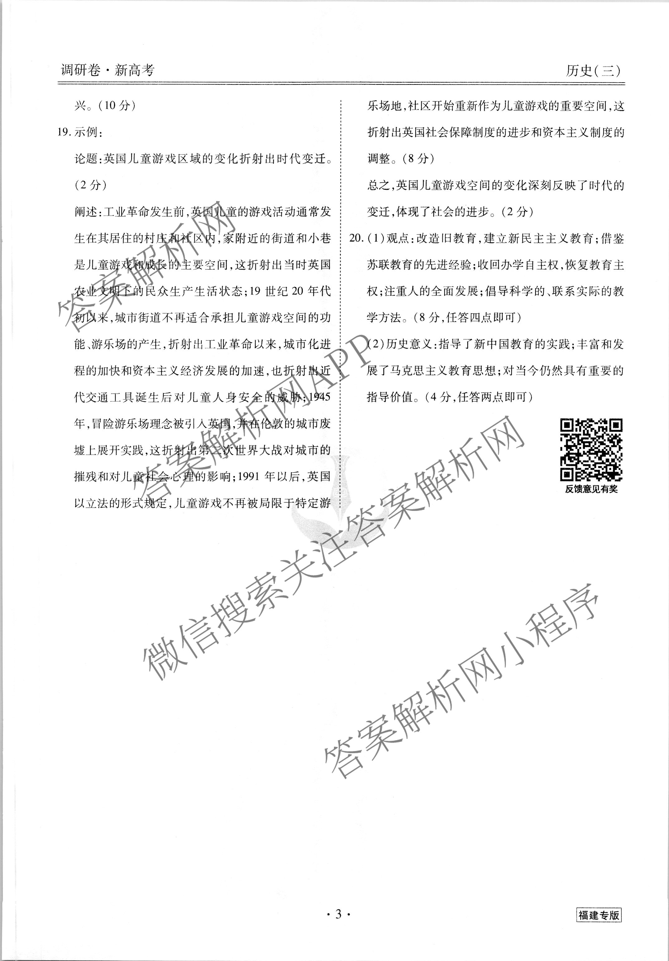 [高三][衡水金卷先享题] 2023届调研卷 历史(福建专版)(三)3答案