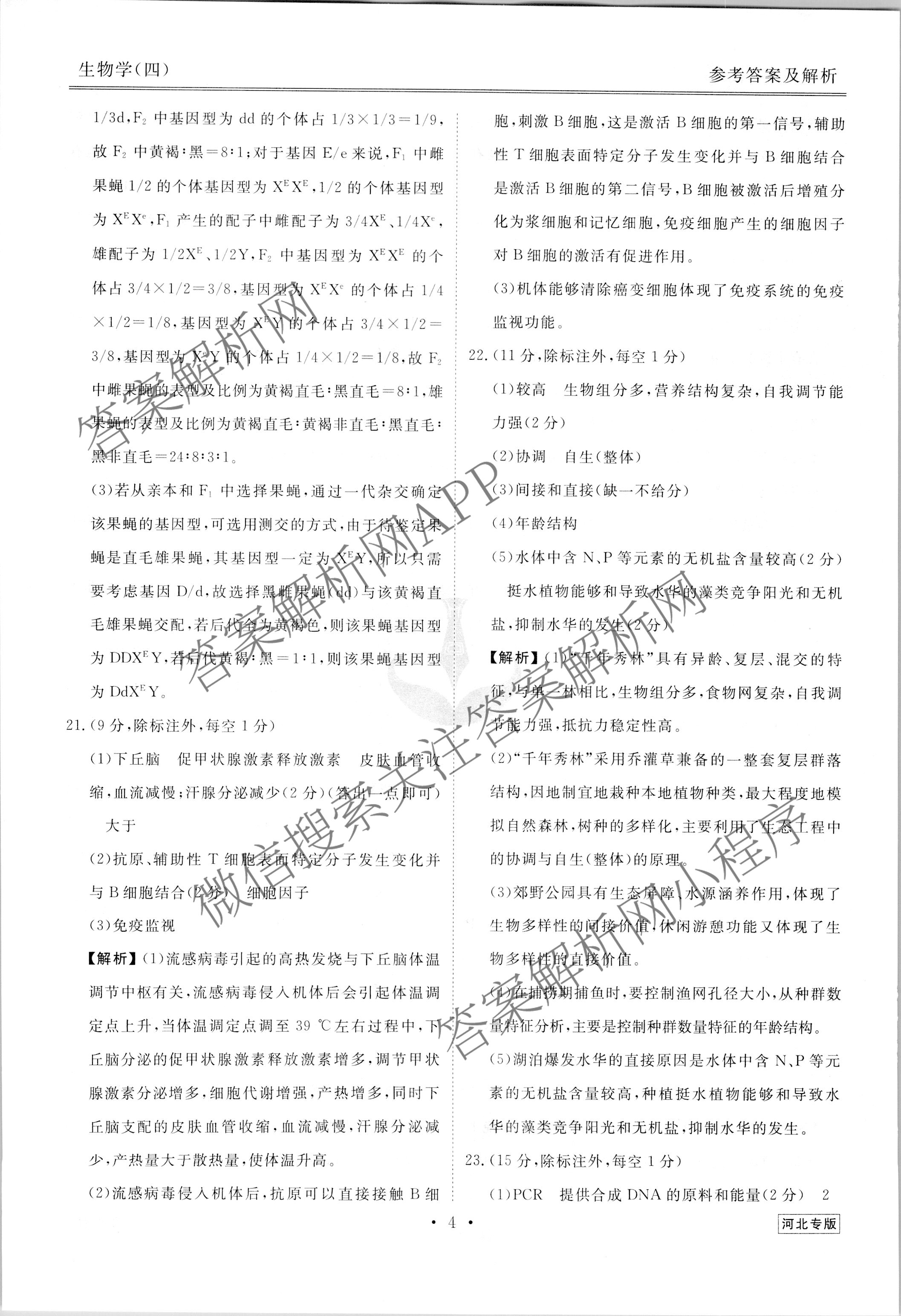 (高三)[衡水金卷先享题] 2023届调研卷 生物(河北专版)(四)4答案