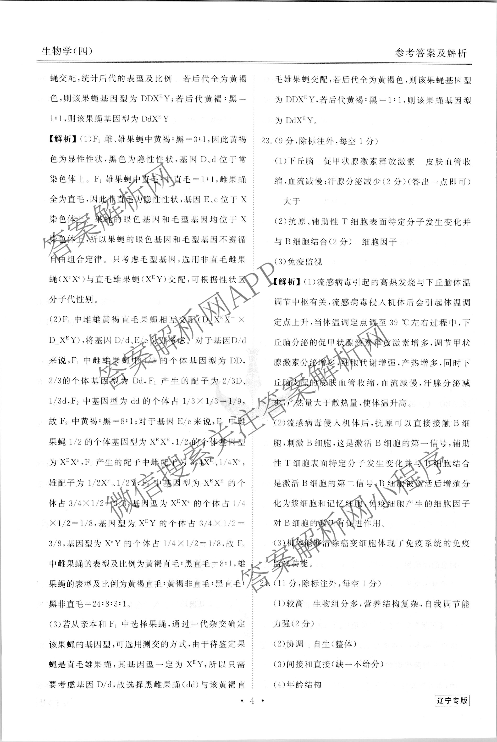 [高三][衡水金卷先享题] 2023届调研卷 生物(辽宁专版)(四)4答案