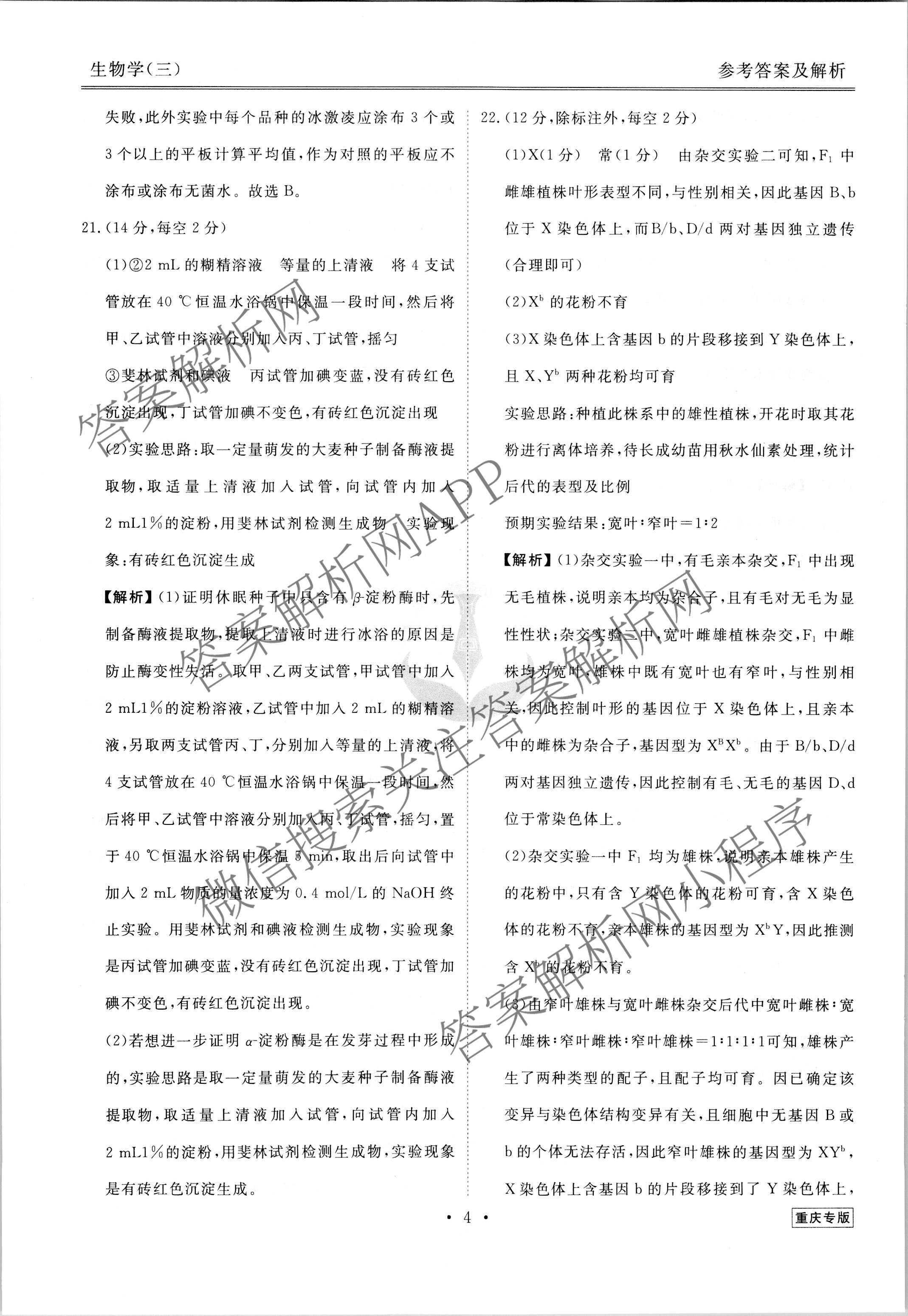 2023届[高三][衡水金卷先享题] 调研卷 生物(重庆专版)(三)3答案