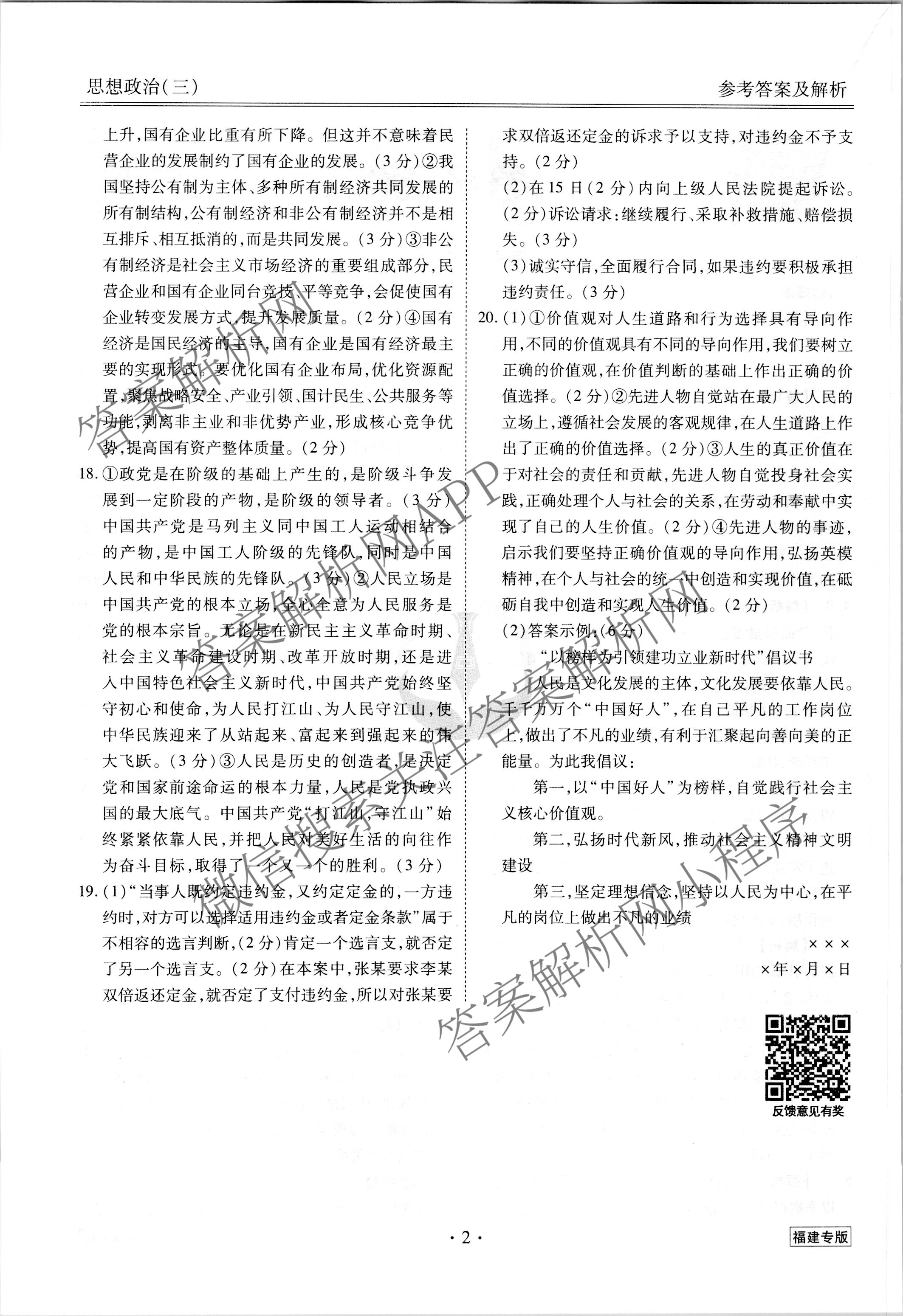 2023届[高三](衡水金卷先享题) 调研卷 政治(福建专版)(三)3答案