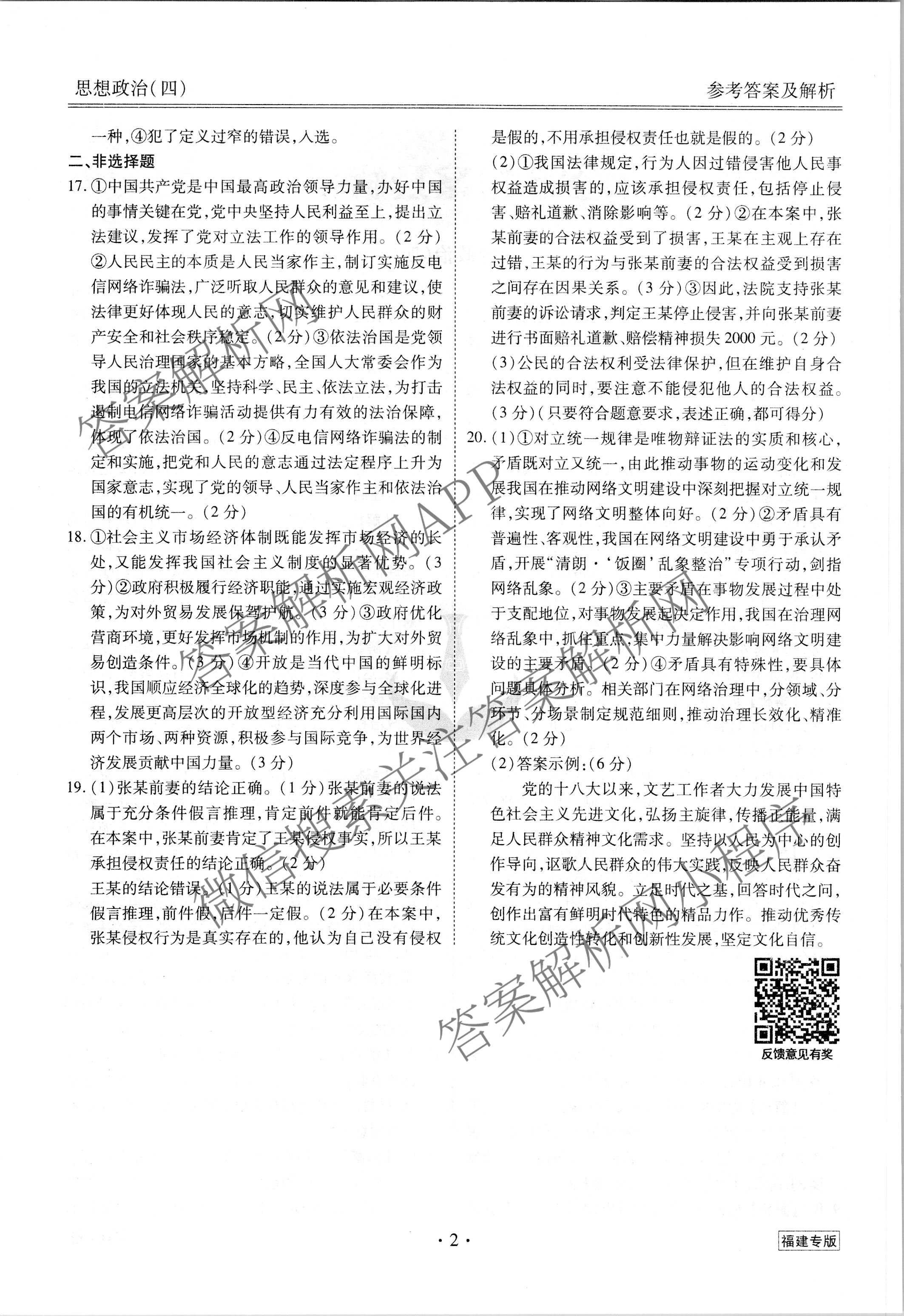 - 2023届(衡水金卷先享题) 调研卷 政治(福建专版)(四)4答案