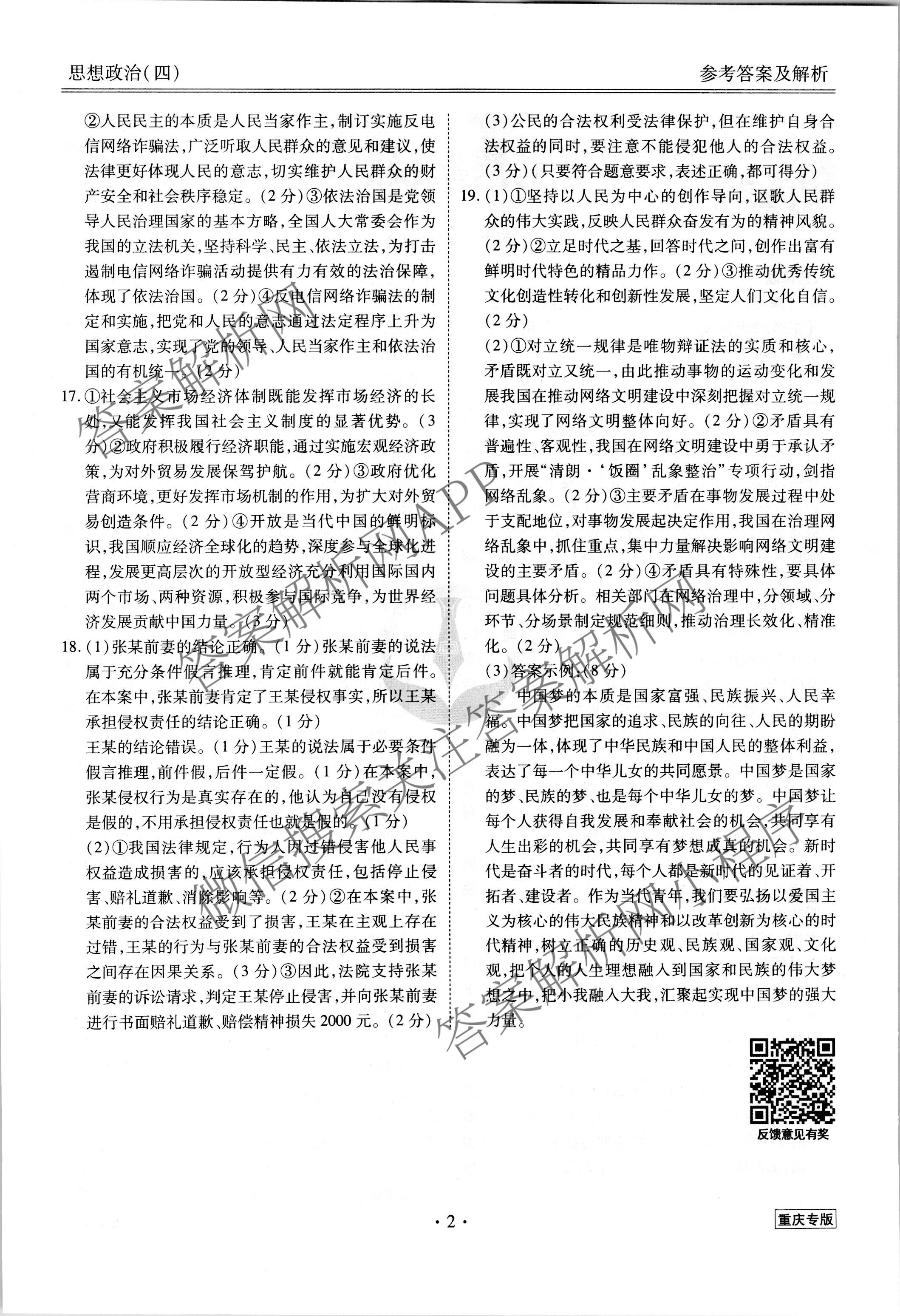 2023届衡水金卷先享题 调研卷 政治(重庆专版)(四)4答案